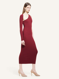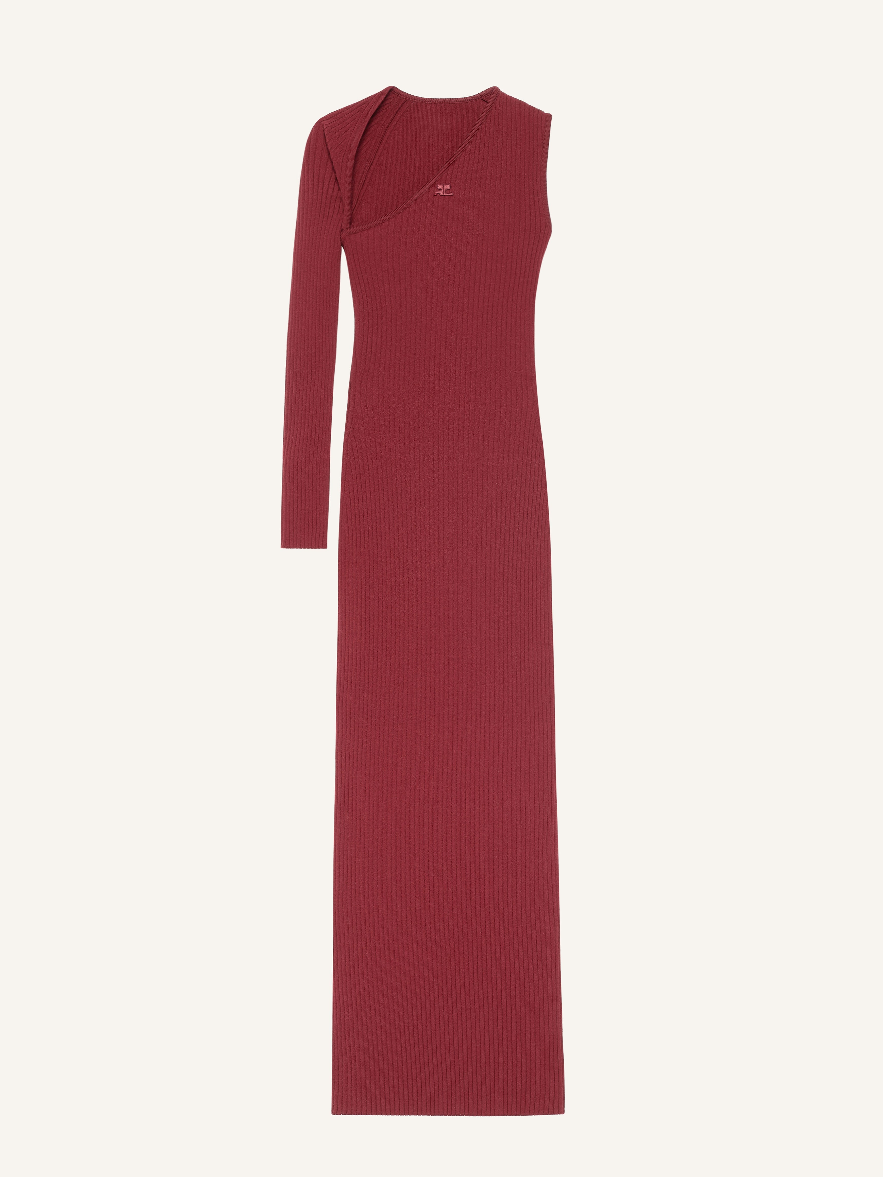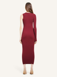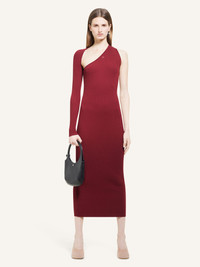 One-sleeve rib-knit fitted long dress with AC logo centered at top of chest. The model is 1.76m tall and wears a size S. DETAILS Composition: 70% viscose, 30% polyester Country of Manufacture: IT SKU: 424MRO520FI00014031 Color: Grenat