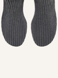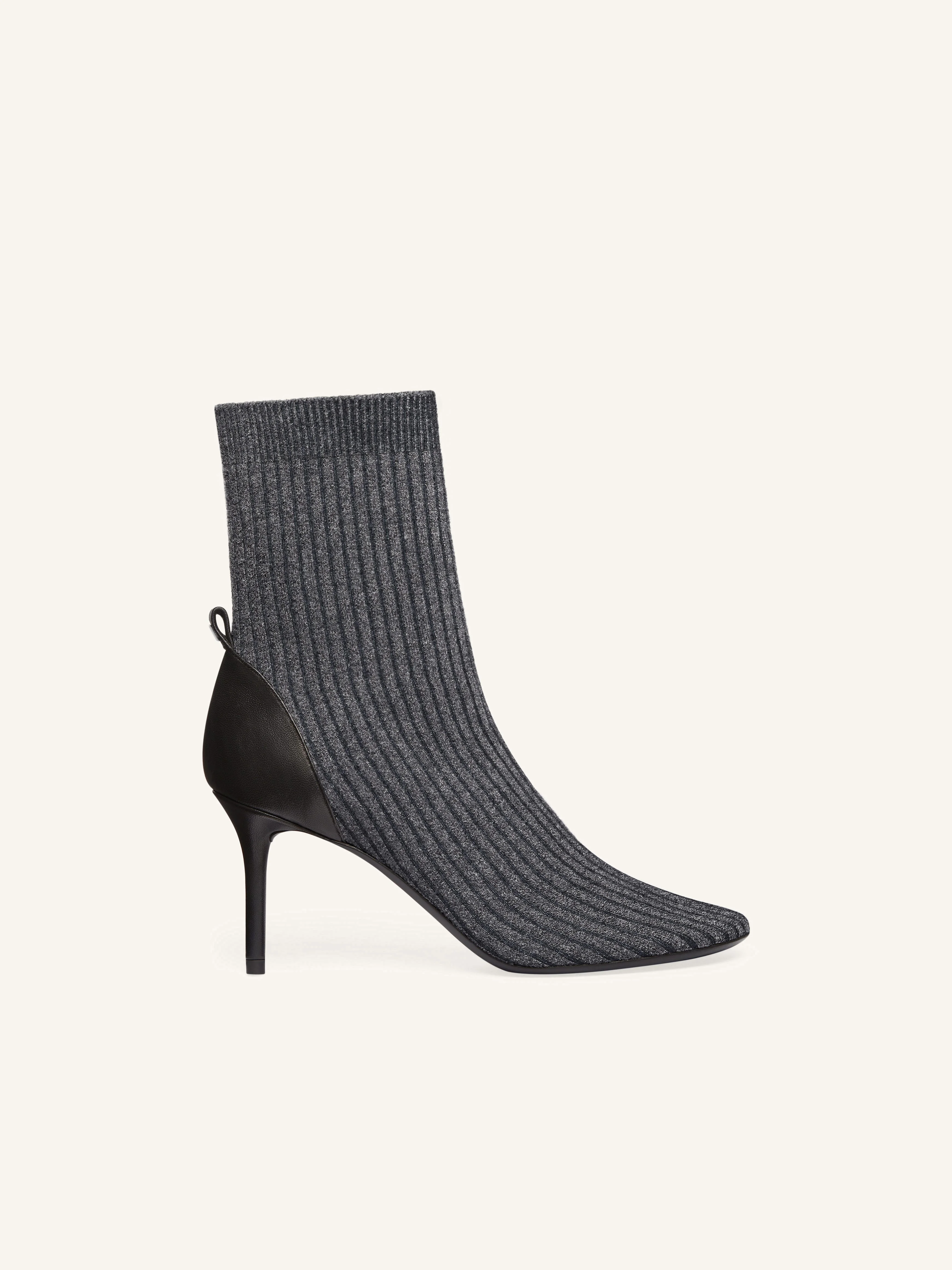 Rib knit and lamb leather ankle boots with metallic AC logo on the back loop. Leather-covered stiletto heel, and rounded toe. Heel height : 90 mm DETAILS Composition: 50% wool, 42% polyamide, 8% elastane Country of Manufacture: IT SKU: 325SAB043FI0073B075 Color: Anthracite / Grey