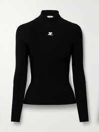 Courreges's sweater is part of the brand's 'Reedition' collection which reimagines archival '60s styles. It's rib-knitted for a close fit and embroidered with the label's emblem at the chest. Make yours the foundation for trans-seasonal looks. Size & Fit - Fits true to size, take your normal size - Designed for a close fit - Fine knit - Model is 180cm/ 5’11” and is wearing a size Small Details & Care - Black ribbed-knit - Slips on - 70% viscose, 30% polyester - Hand wash