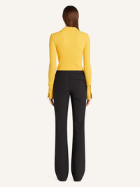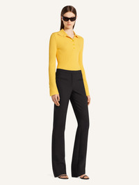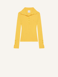 Long-sleeved rib-knit polo shirt with buttoned collar and sleeves. AC logo on chest. The model is 1.79m tall and wears a size S. DETAILS Composition: 70% viscose, 30% polyester Country of Manufacture: BG SKU: 325MPO051FI00012034 Color: Sun