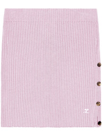 ribbed mini skirt Highlights - Light pink - Elasticated waistband - Side button fastening - Embroidered logo to the front - Straight hem Made in Italy Composition Cotton 80%, Merino 20%