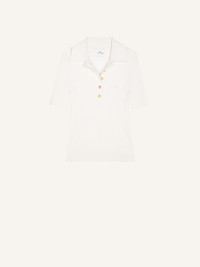 Rib-knit polo shirt with short sleeves and buttoned neckline. AC logo on chest. DETAILS Composition: 70% viscose, 30% polyester Country of Manufacture: BG SKU: VESMPO029FI00010001 Color: Heritage White