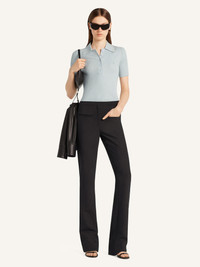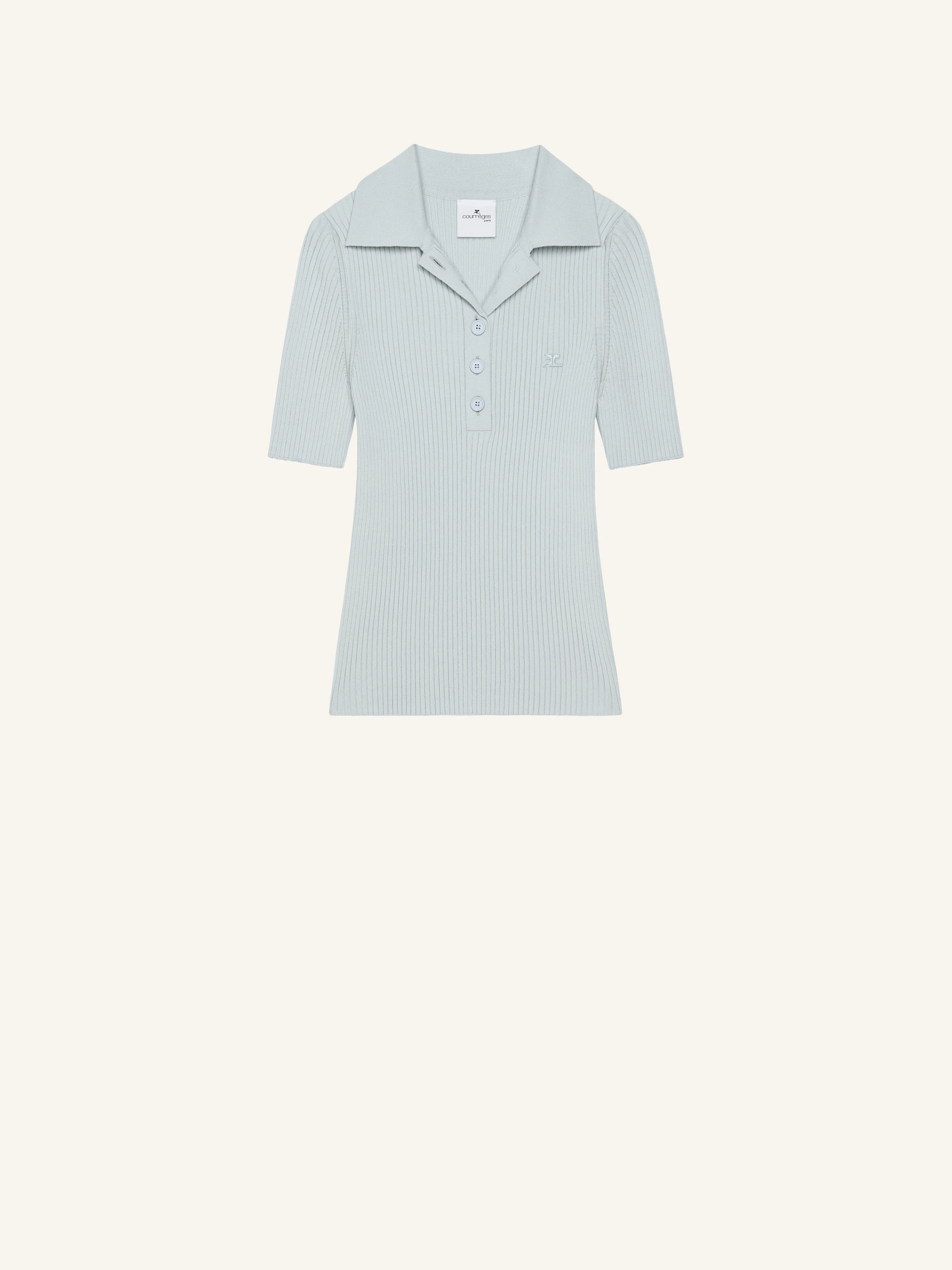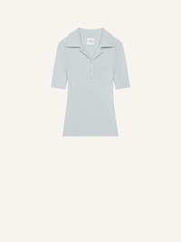 Short-sleeved rib-knit polo shirt with buttoned neckline and AC logo on chest. The model is 1.79m tall and wears a size S. DETAILS Composition: 70% viscose, 30% polyester Country of Manufacture: BG SKU: 125MPO029FI00017106 Color: Cloud blue