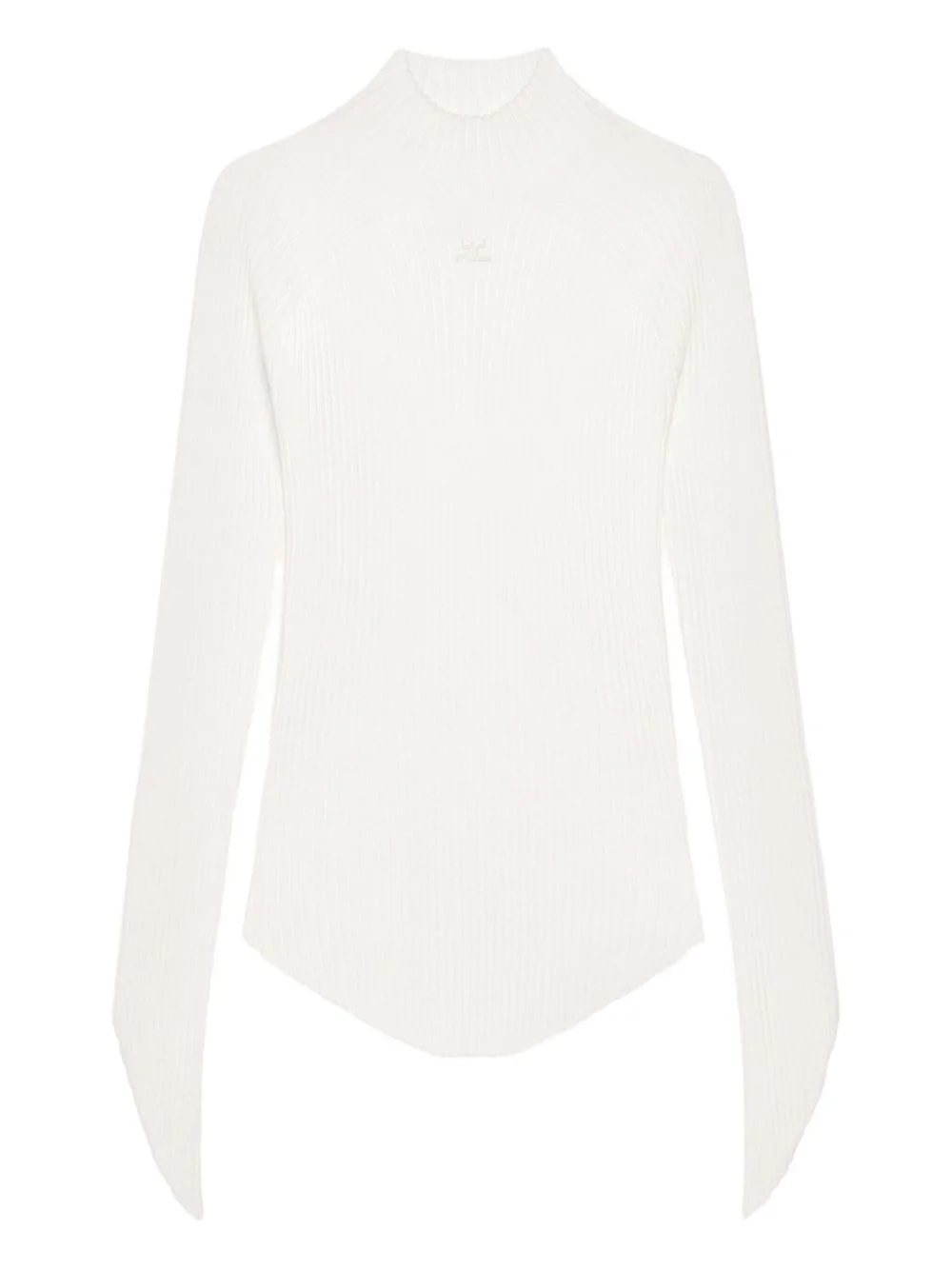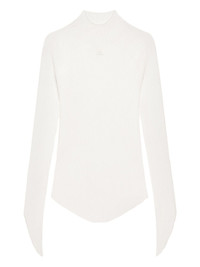 ribbed turtleneck top Highlights - White - High neck - Long sleeves - Ribbed texture - Logo detail Made in Italy Composition Outer: Viscose 70%, Polyester 30% Washing instructions Read Manufacturer Guidelines
