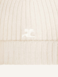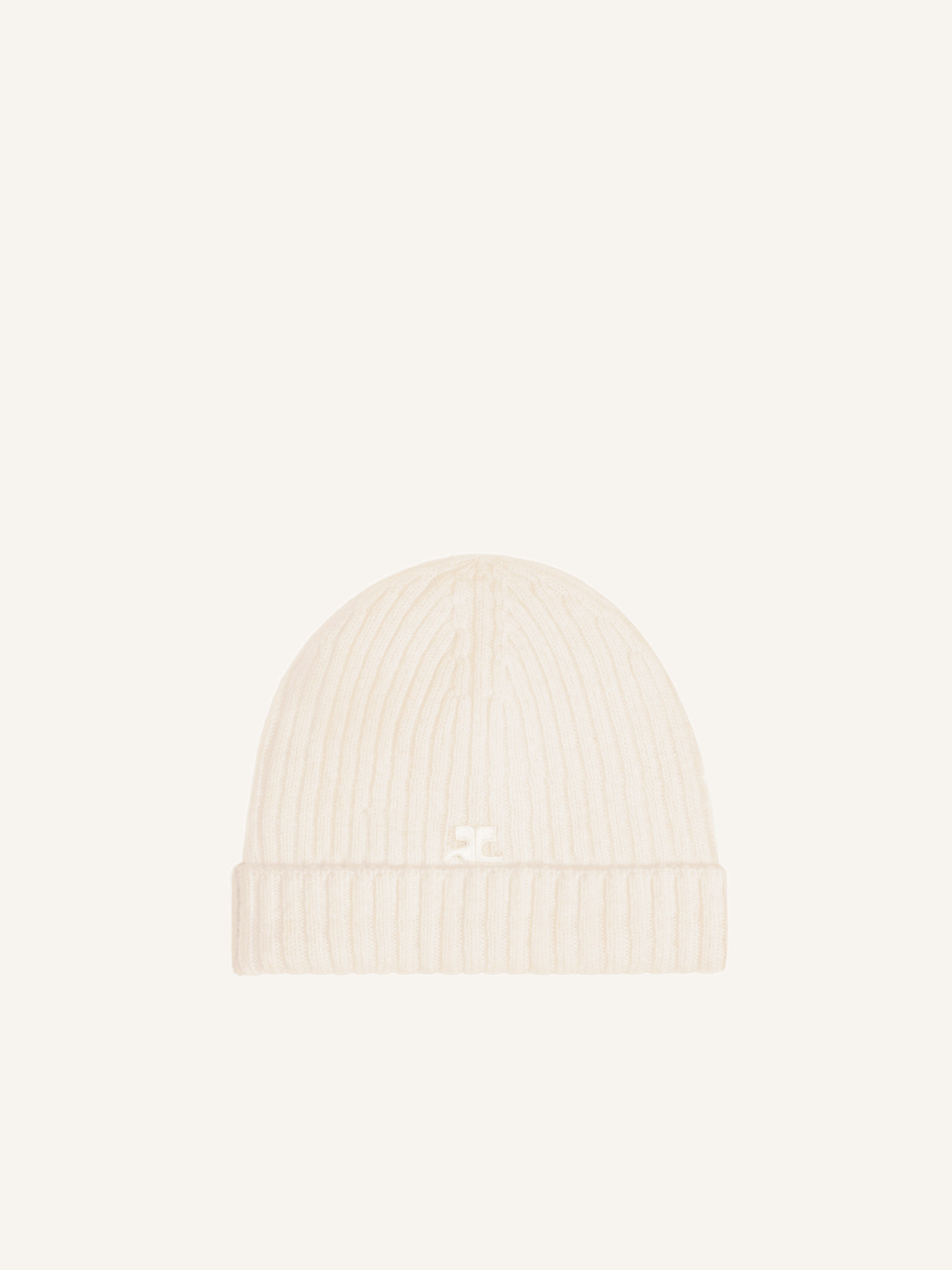 Ribbed wool beanie with AC logo on front. DETAILS Composition: 100% wool Country of Manufacture: FR SKU: 324MCP012FI00620079 Color: Natural Beige
