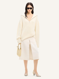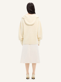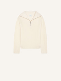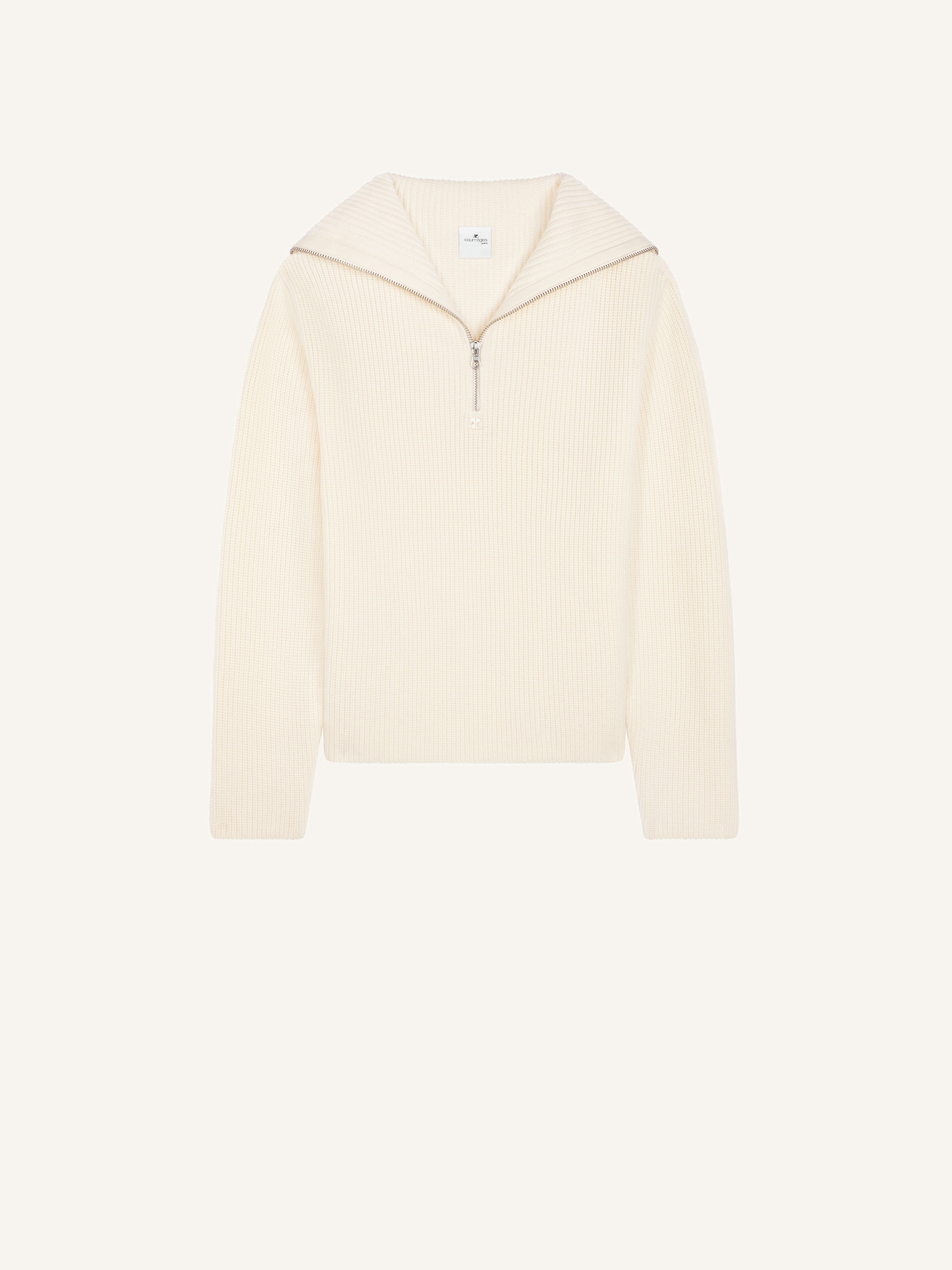 Zipped ribbed wool hooded sweater. Long sleeves and AC logo below the neckline. This item is unisex. The female model is 1.78 m tall and the male model is 1.85 m tall, both wearing a size M. DETAILS Composition: 100% merino wool Country of Manufacture: IT SKU: 324MPU182FI00360079 Color: Natural Beige