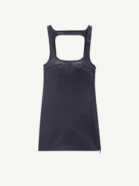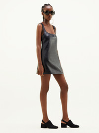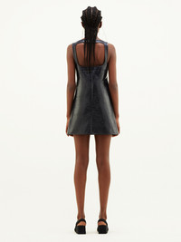Sleeveless vinyl dress with straps. DETAILS Composition : 88% COTON 10% POLYURETHANE 2% ELASTHANE 100% CUPRO Color : Navy Item code : PERCRO036VY00147075