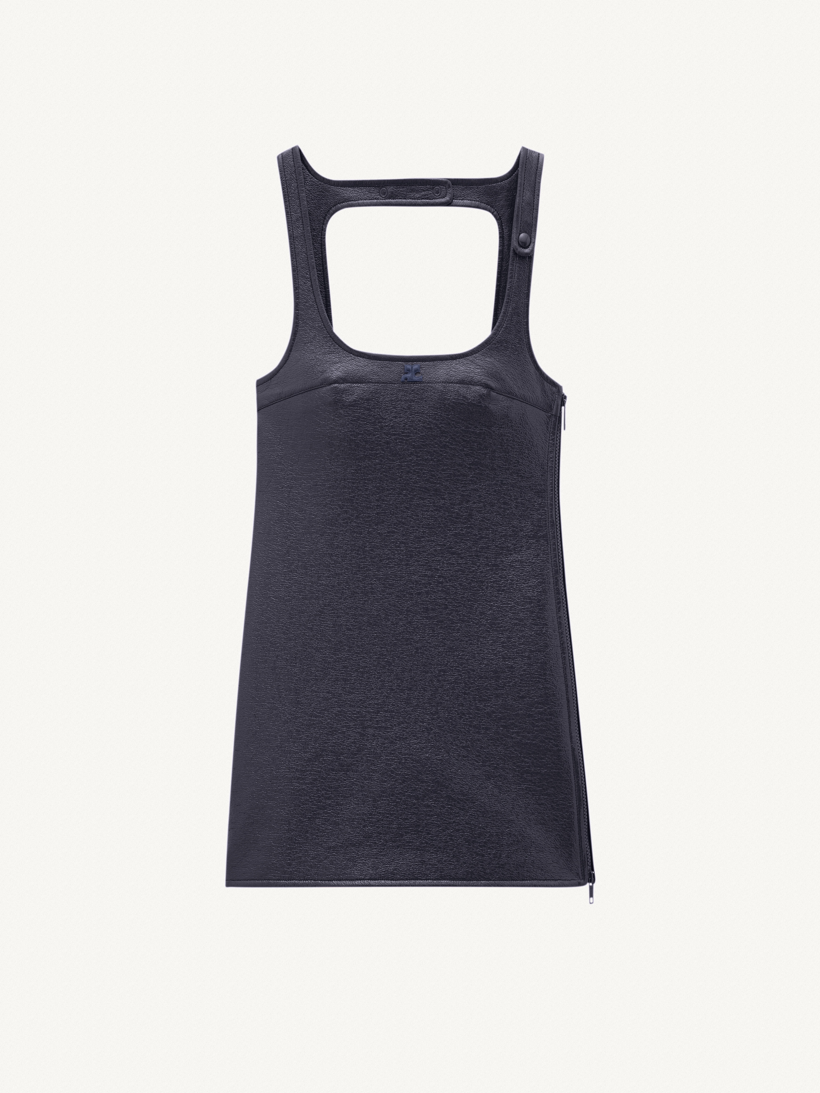 Sleeveless vinyl dress with straps. DETAILS Composition: PERCRO036VY0003 Country of manufacture: Serbie Colour: Bleu Marine Item code: PERCRO036VY00037075