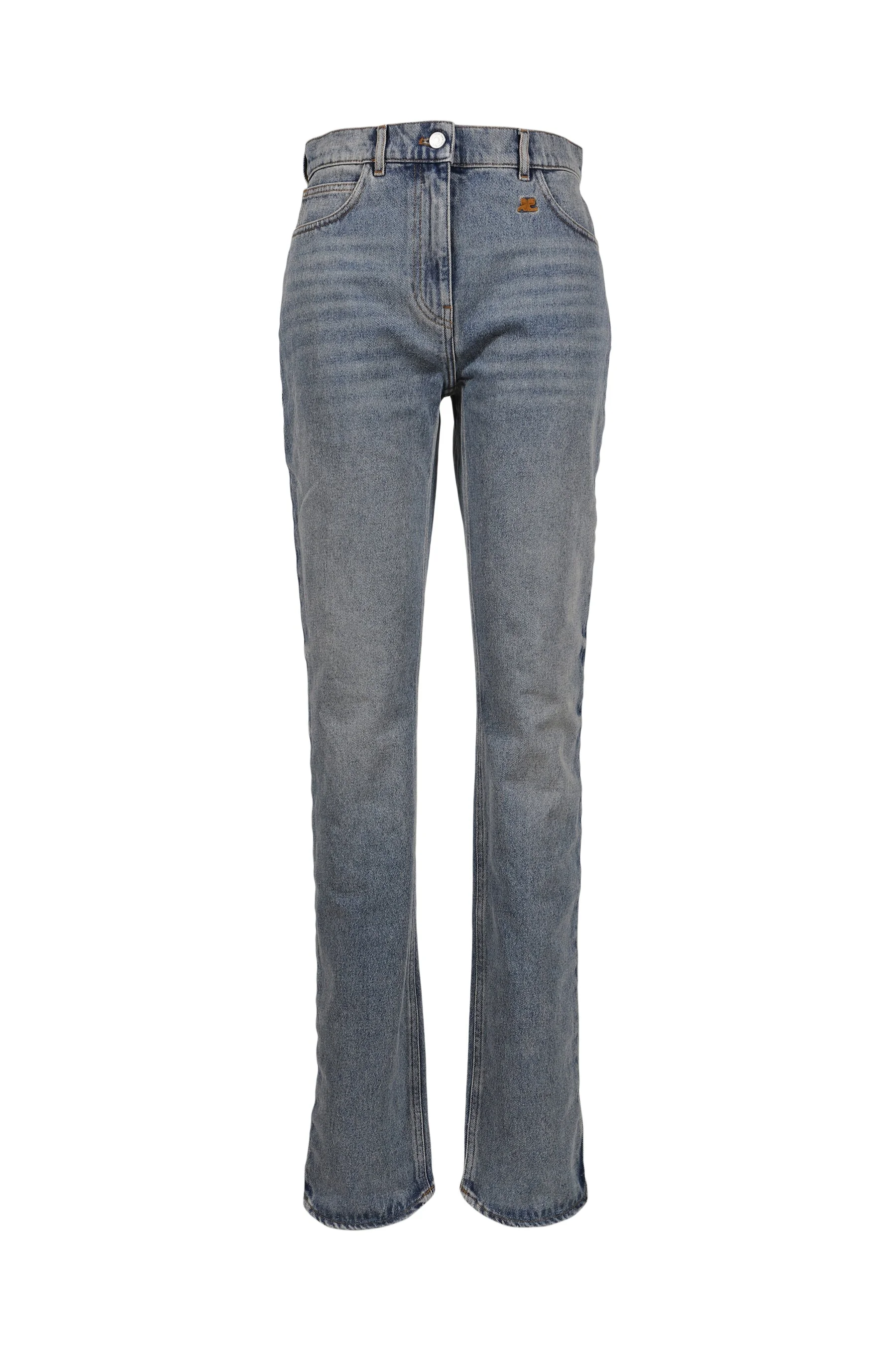 Sizing Size Waist Front Rise Inseam Full Length Thigh Hem 26 68cm 26cm 87cm 113cm 26cm 16cm 27 70cm 27cm 87cm 114cm 27cm 16cm 28 74cm 27cm 88cm 115cm 28cm 17cm Product Detail - Gender: WOMEN - Designer: Courreges - Categories: WOMEN'S JEANS Courreges jeans - Material: COTTON 100% - Model Number: 126dpa673de0058-denim-bleu-delave
