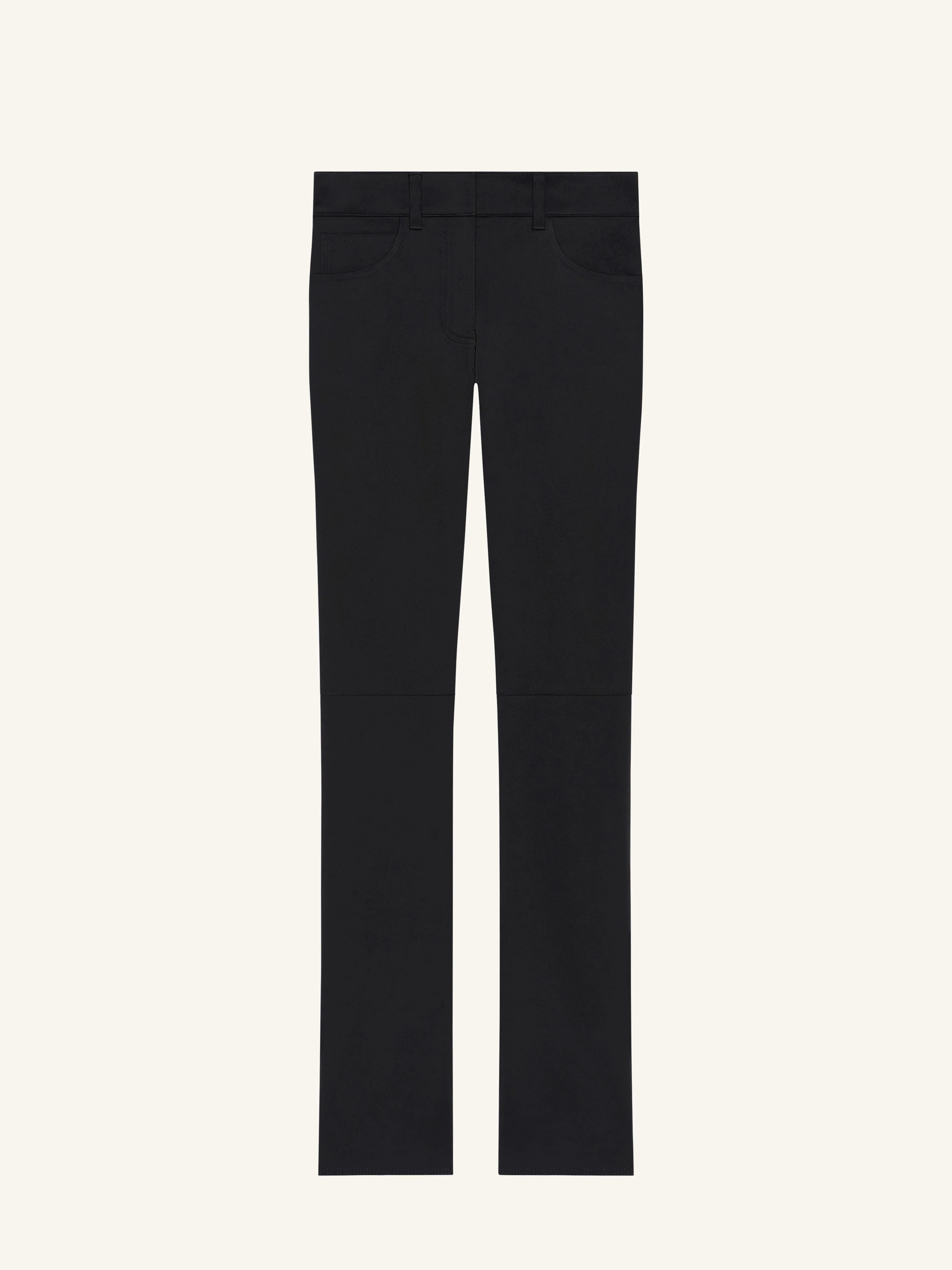 Satin bootcut pants with bottom-leg detail and adjustable ankle band. Front and back welt pockets. AC logo on back pocket. The model is 1.75m tall and wears a size 36. DETAILS Composition: 80% acetate, 20% polyester Country of Manufacture: FR SKU: 425CPA440PL01609999 Color: Black