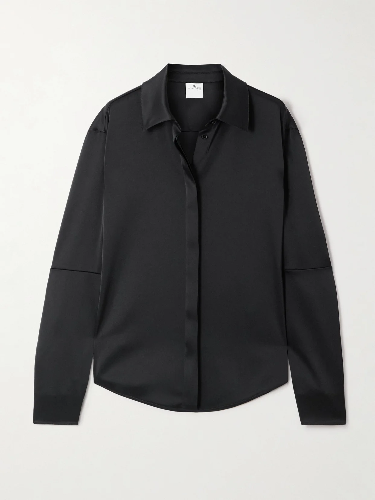 Courreges' shirt is tailored from black slinky satin, making it a chic choice for evenings out. Designed for a slightly loose fit, it's has paneled sleeves and is embroidered with the founder's initials at the hem.