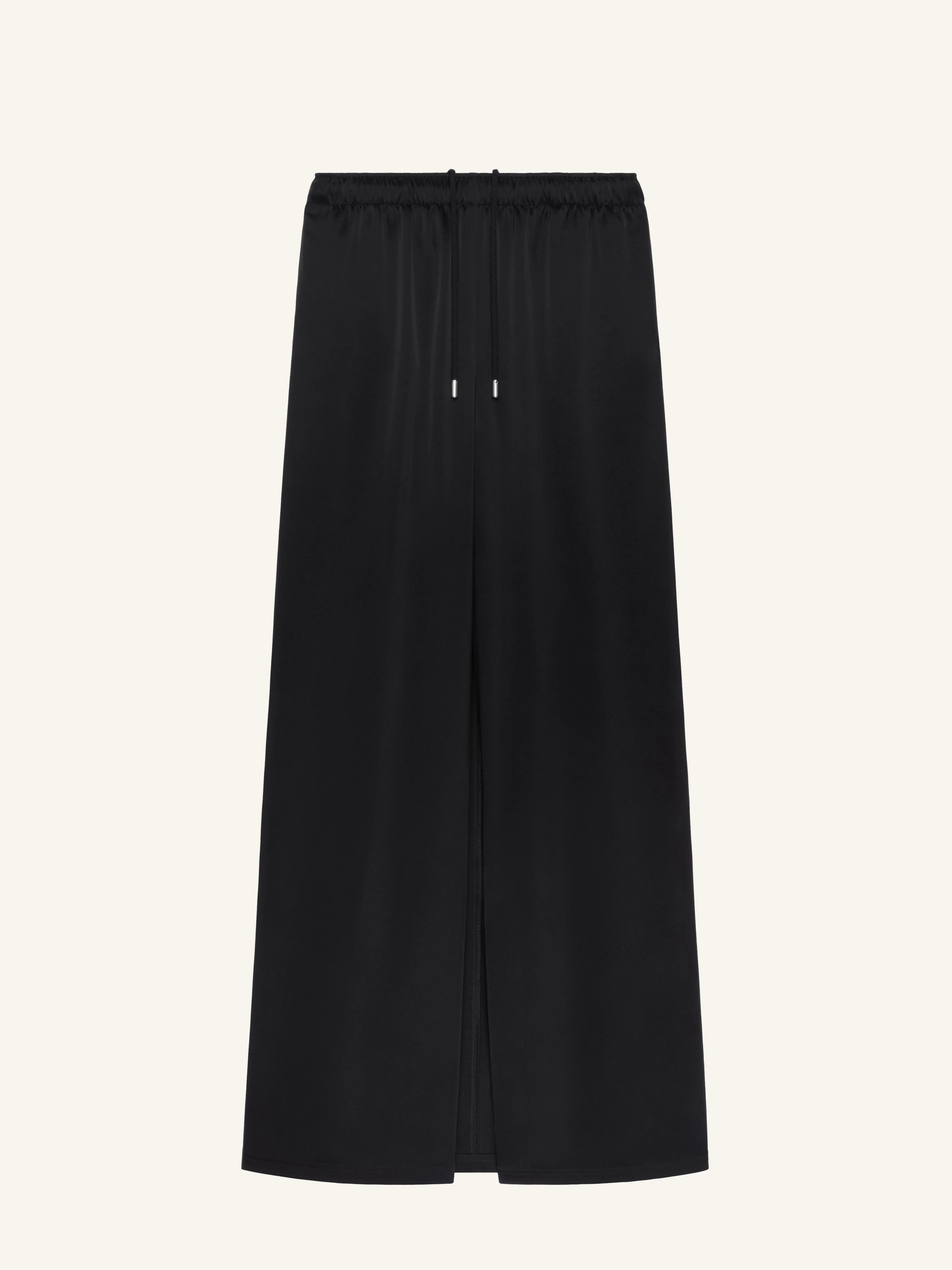 Wide satin pants with skirt-effect train at the back. Waistband with drawcord and AC logo on front pocket. Zipped pocket and ‘Courreges’ logo on jacron label at the back. The model is 1.76m and wears a size 36. DETAILS Composition: 83% triacetate, 17% polyester (PES) Country of Manufacture: MG SKU: 226CPA650TA00079999 Color: Black