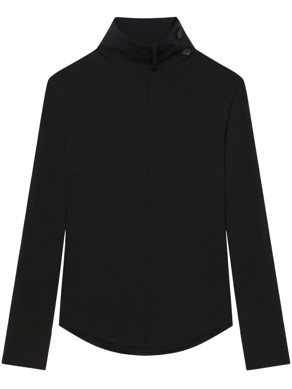 scarf-detail blouse Highlights - Black - Off-centre front button fastening - Buttoned cuffs - High neck Imported Composition Cotton 50%, Polyester 50%