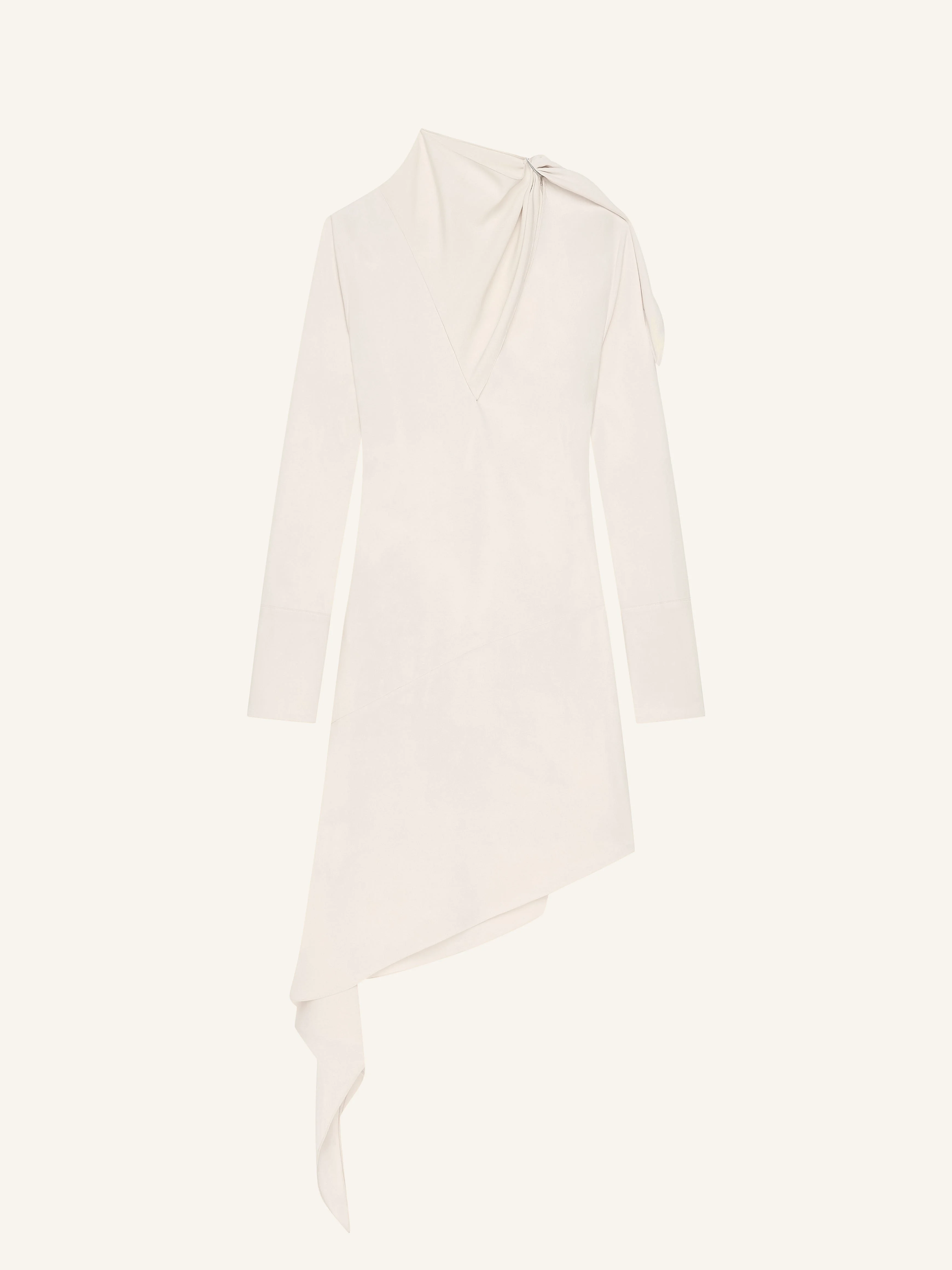 Asymmetrical long-sleeved satin dress with scarf collar and buckle detail. Side slit. The model is 1.77m tall and wears a size 36. DETAILS Composition: 97% viscose, 3% elastane Country of Manufacture: SK SKU: 325CRO668VI00711001 Color: Ivory
