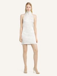 Light sleeveless dress with scarf collar and side button fastening. The model is 1.77m tall and wears a size 36. DETAILS Composition: 83% triacetate, 17% polyester Country of Manufacture: PT SKU: 125CRO576TA00070079 Color: Natural Beige