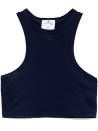 Scuba bra top Highlights - Navy blue - Stretch-jersey - Sleeveless - Embroidered logo to the rear Imported Composition Polyamide 78%, Elastane 22% SIZE & FIT Model measurements Height 5 ft 9 in(1.76 m) Bust/Chest 31.1 in(79 cm) Hips 35.03 in(89 cm) Waist 24.4 in(62 cm) FittingInformation Designed for a close fit throughout Cropped in length Made from a midweight stretch fabric, this piece offers elasticity and flexibility when worn