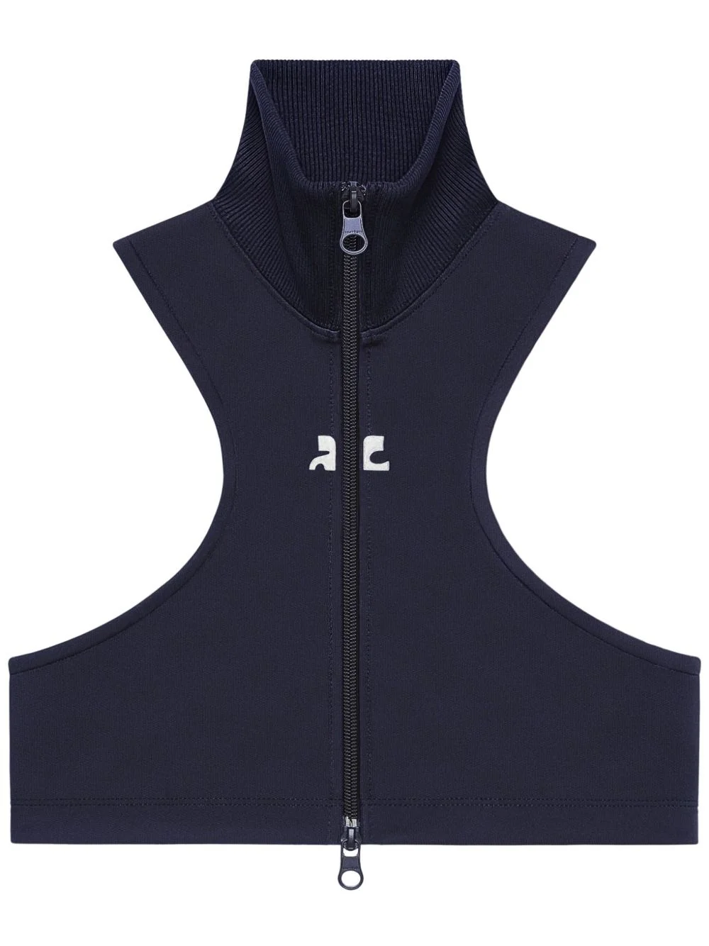 scuba-jersey crop top Highlights - Navy blue - Front two-way zip fastening - Stand-up collar - Embroidered logo at the chest - Racerback Imported Composition Polyester 100%