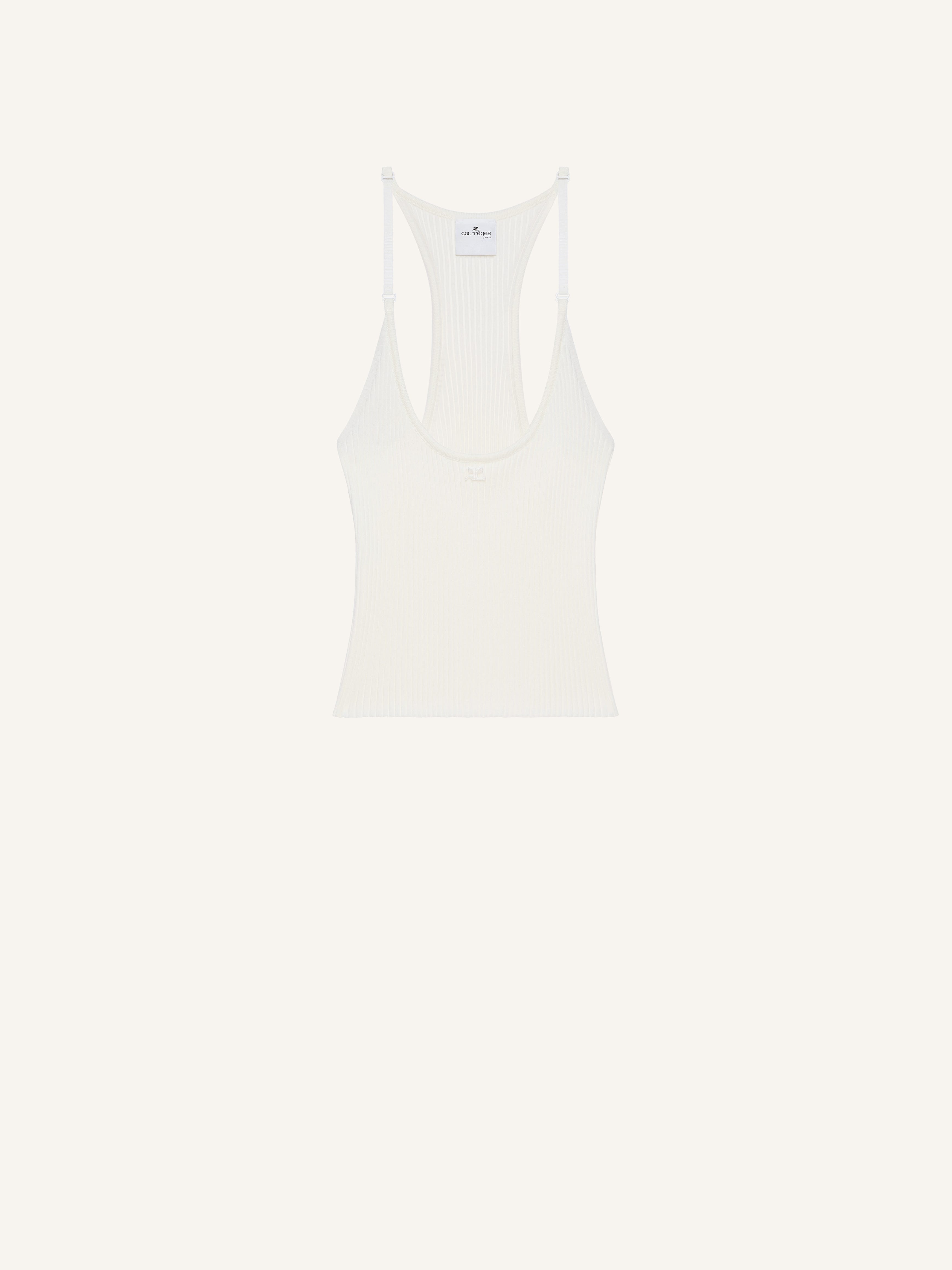 Rib-knit racer back tank top. Lingerie straps and AC logo below neckline. The model is 1.78m tall and wears a size S. DETAILS Composition: 70% viscose, 30% polyester Country of Manufacture: BG SKU: 125MDE117FI00010001 Color: Heritage White