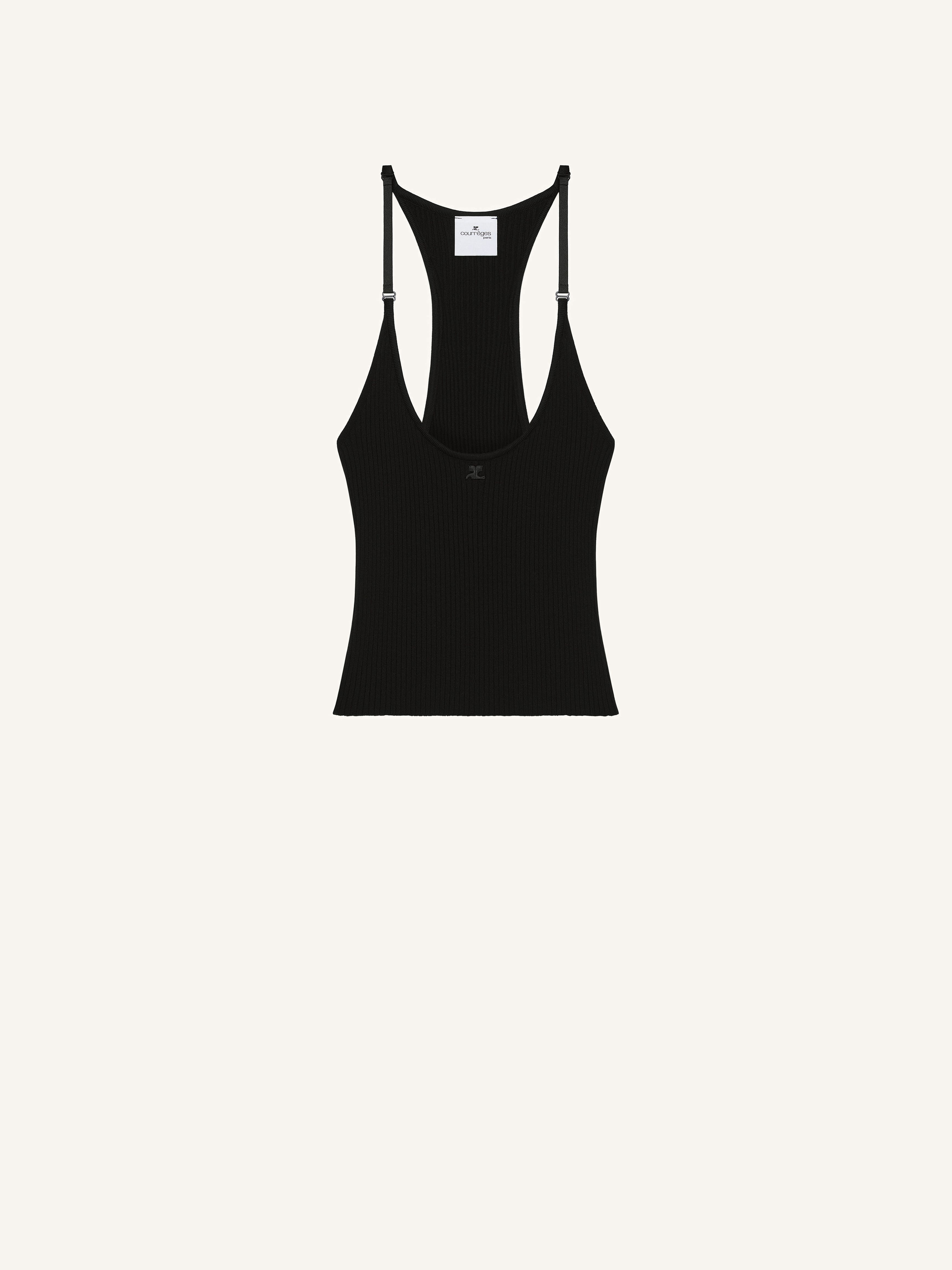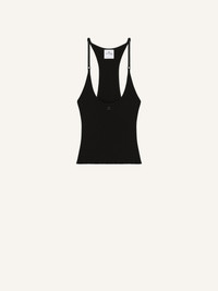 Rib-knit racer back tank top. Lingerie straps and AC logo below neckline. The model is 1.78m tall and wears a size S. DETAILS Composition: 70% viscose, 30% polyester Country of Manufacture: BG SKU: 125MDE117FI00019999 Color: Black