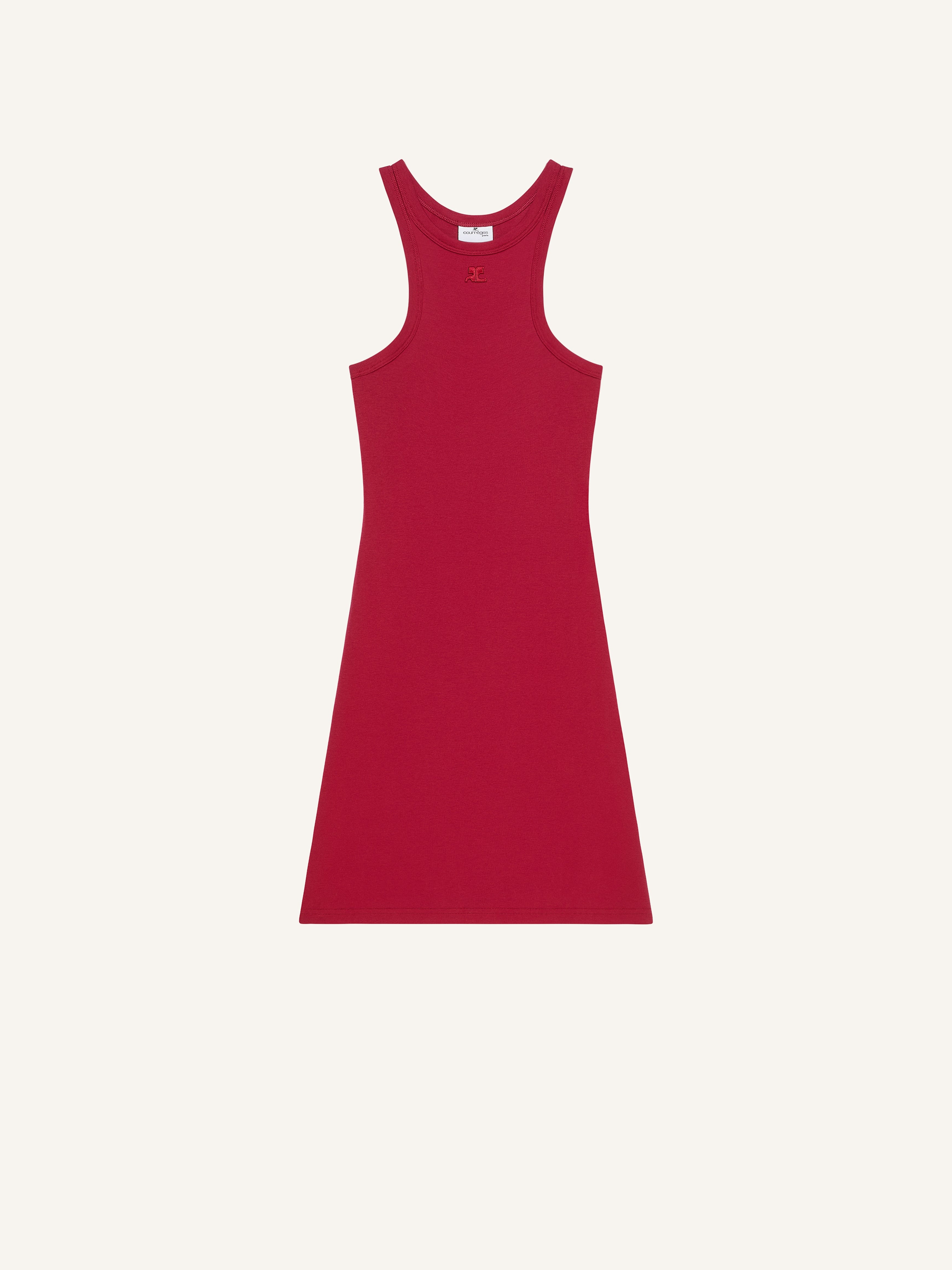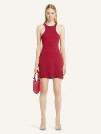 Sleeveless A-line jersey short dress with AC logo below neckline. The model is 1.77m tall and wears a size S. DETAILS Composition: 100% cotton Country of Manufacture: PT SKU: 125JRO577JS02034015 Color: Ruby