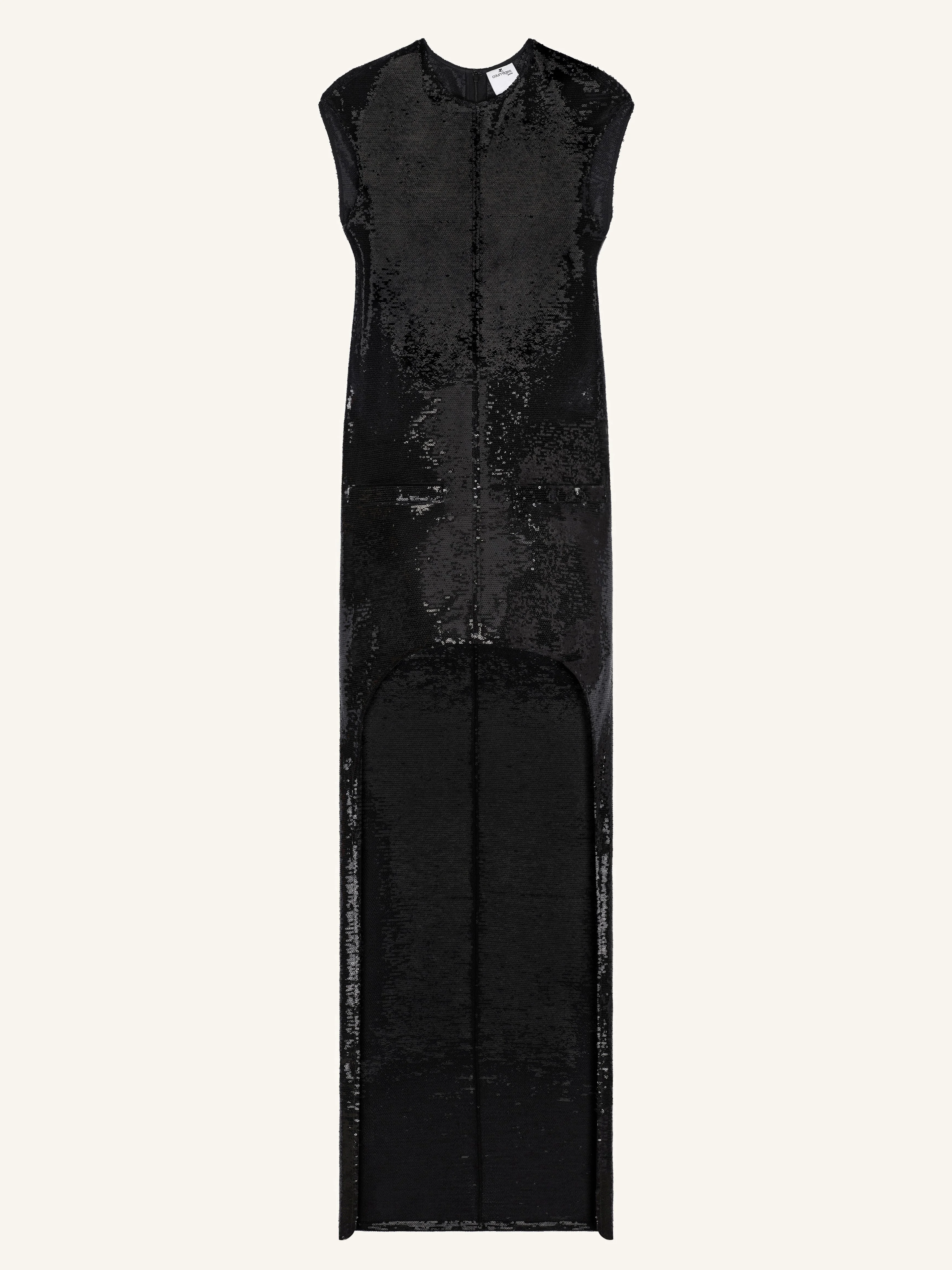 Asymmetrical long short sleeved dress with two front welt pockets. The model is 1.75m and wears a size 36. DETAILS Composition: 100% polyester Country of Manufacture: IT SKU: 126CRO814PAI0019999 Color: Black