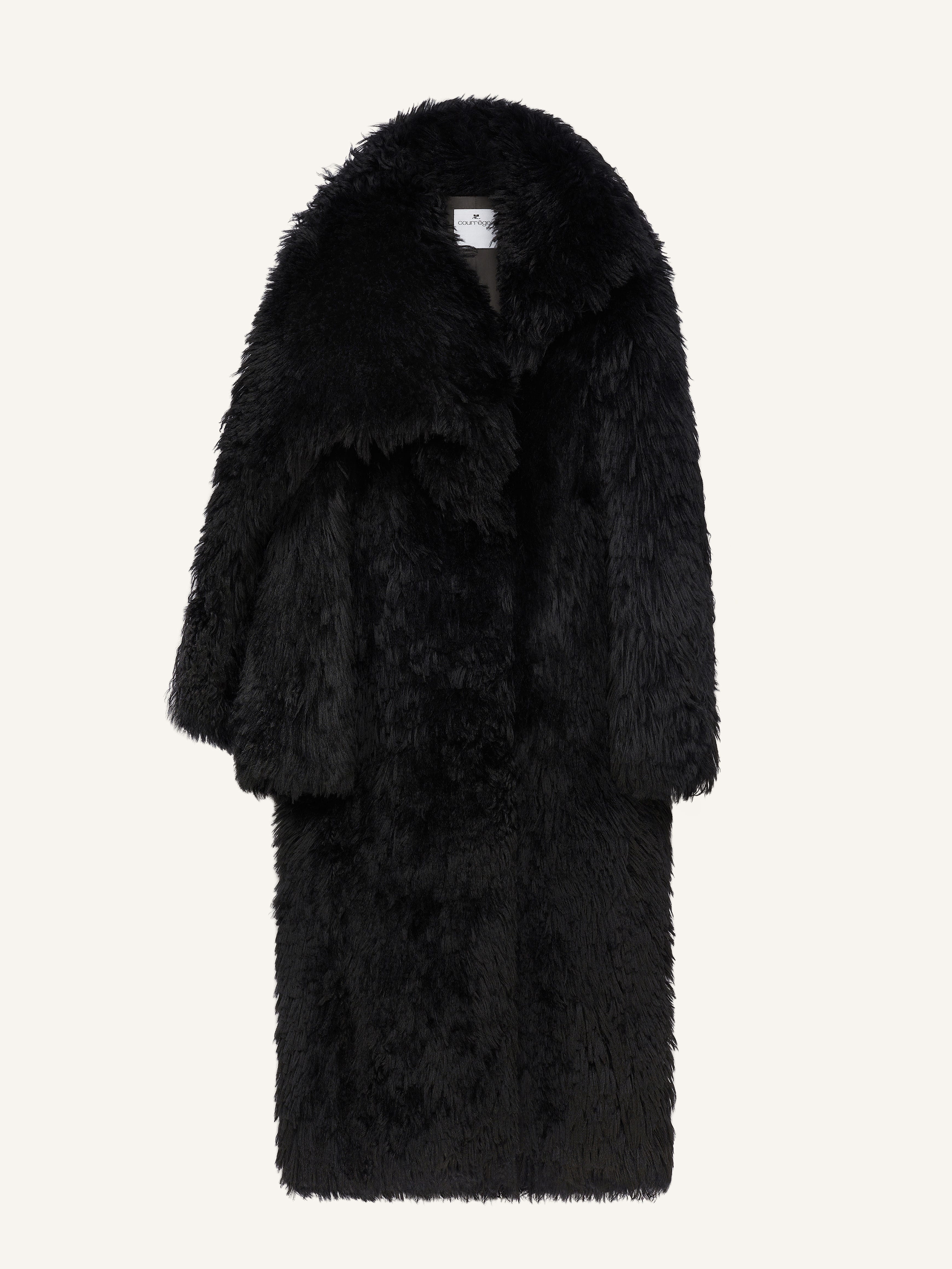 Long Shearling coat with large collar and long zipped sleeves. The model is 1.78m tall and wears a size 36. DETAILS Composition: 100% lamb fur Country of Manufacture: FR SKU: 424LMA175CM00029999 Color: Black