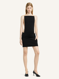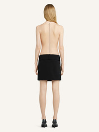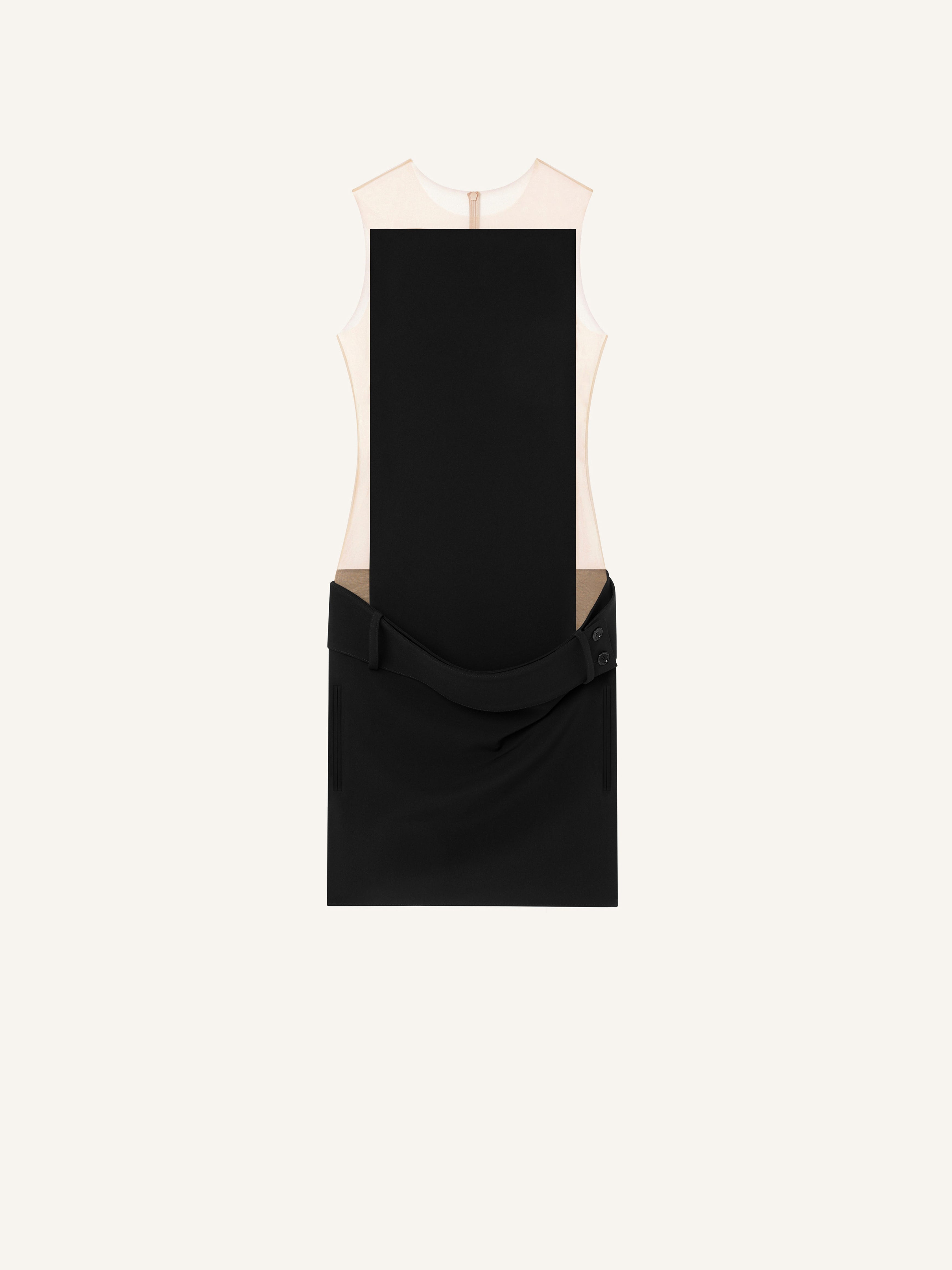 Illusion square short dress with tulle body and draped skirt. The model is 1.78m tall and wears a size 36. DETAILS Composition: 89% polyester, 11% polyurethane Country of Manufacture: FR SKU: 125CRO556PL01599999 Color: Black