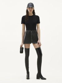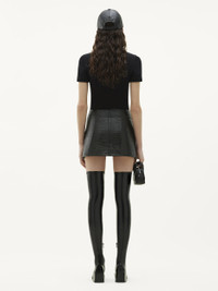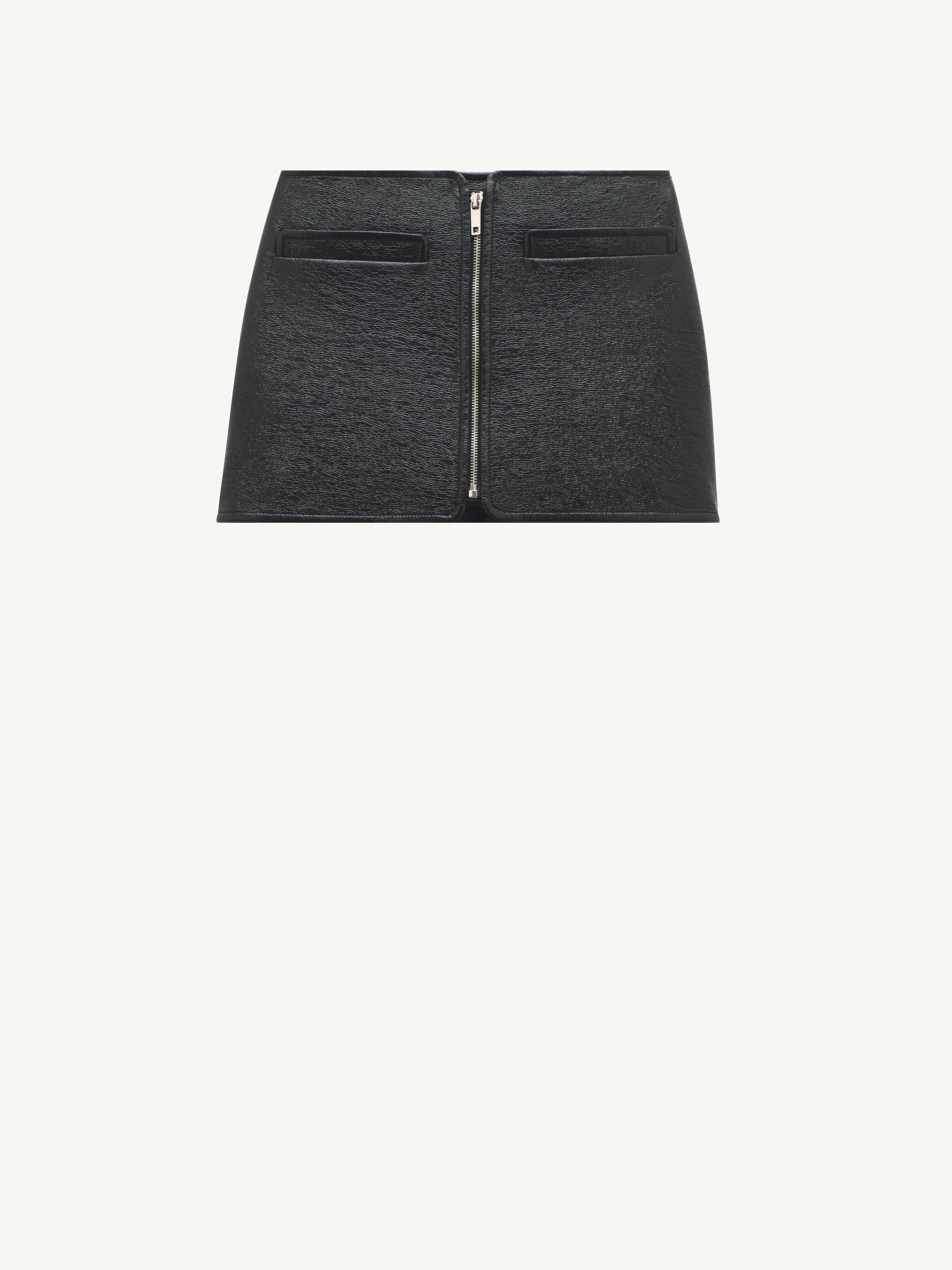 Mini skirt in vinyl, zip closure. Swallow opening at the top and bottom of the skirt in the front. Two horizontal piped pockets. DETAILS Main fabrics: 88% Coton 10% Polyurethane 2% Elasthane Lining: 100% Cupro Colour: Black Item code: 322CJU048VY00039999