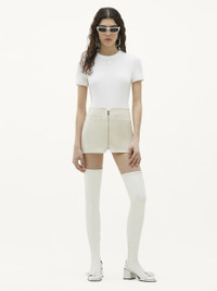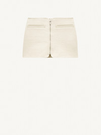Mini skirt in vinyl, zip closure. Swallow opening at the top and bottom of the skirt in the front. Two horizontal piped pockets. DETAILS Main fabrics: 88% Coton 10% Polyurethane 2% Elasthane Lining: 100% Cupro Colour: Off-White Item code: 322CJU048VY00030011