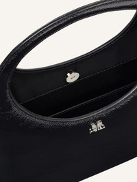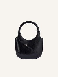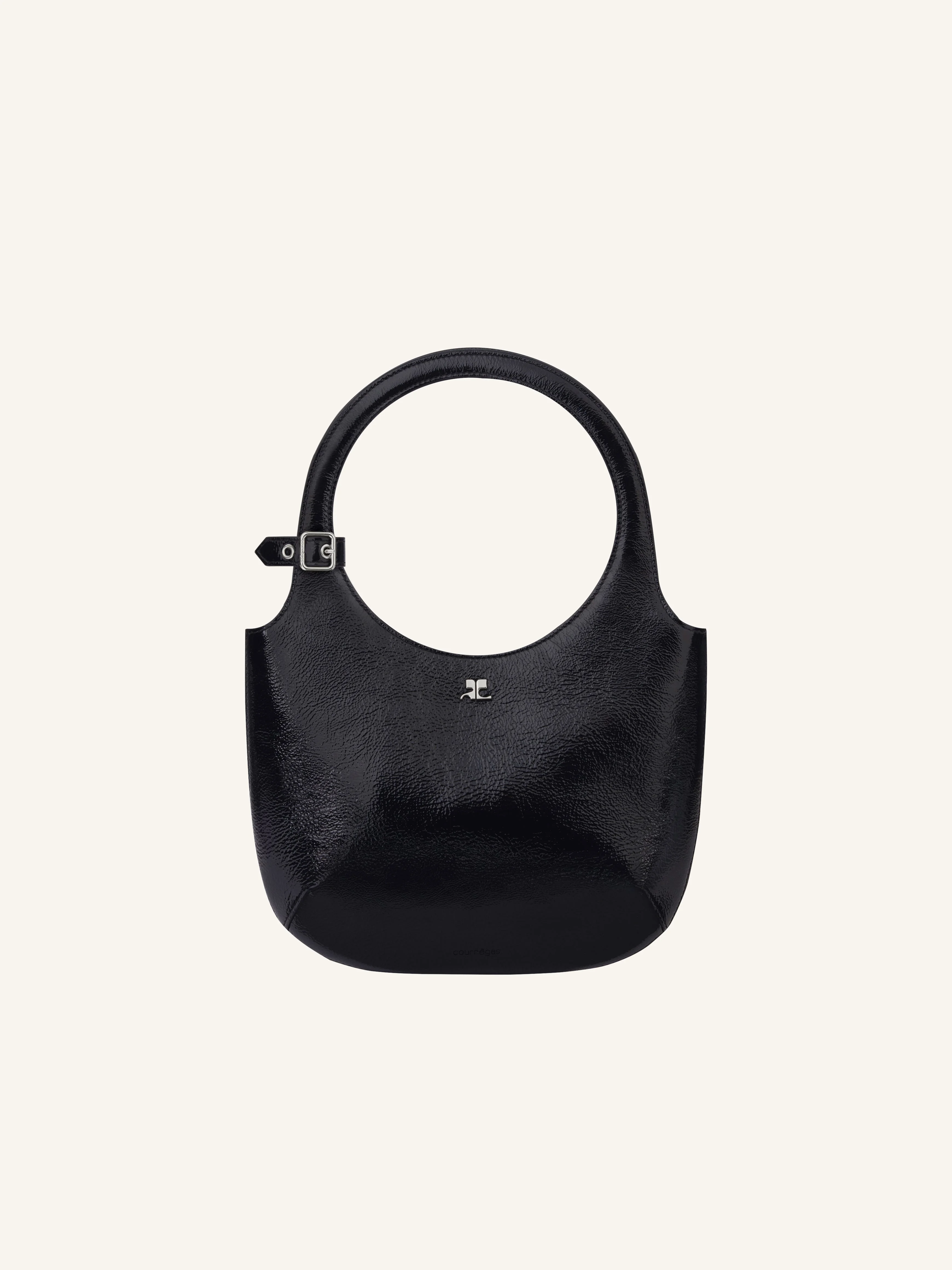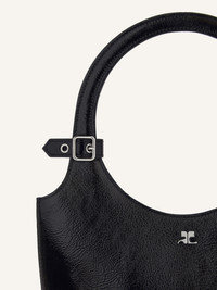 Holy bag in naplack calf leather with magnetic closure and metallic AC logo. Buckle detail on handles and inside pocket. Adjustable, removable shoulder strap. Embossed "Courreges" logo on front. Length: 19 cm Height: 34 cm Opening width: 24 cm Strap length: 94 cm DETAILS Composition: 100% leather Country of Manufacture: IT SKU: 424GSA102CR00439999 Color: Black