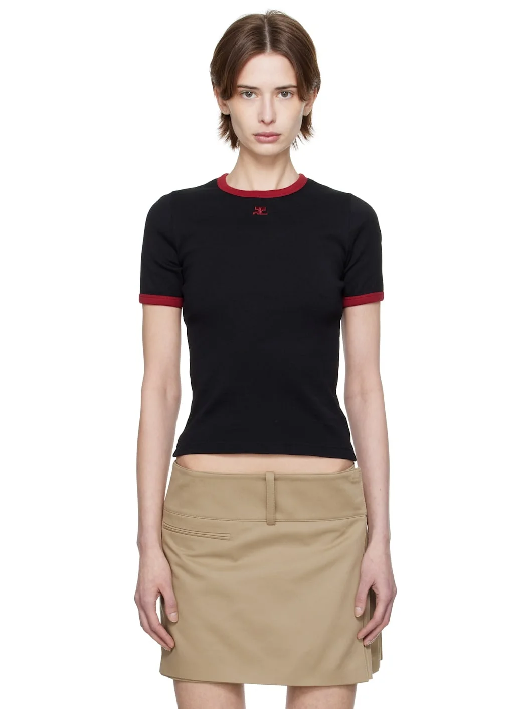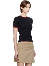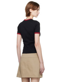 Cotton jersey T-shirt. · Rib-knit crewneck and cuffs · Embroidered logo patch at chest Supplier color: Black/Ruby 100% cotton. Made in Portugal 251783F110009