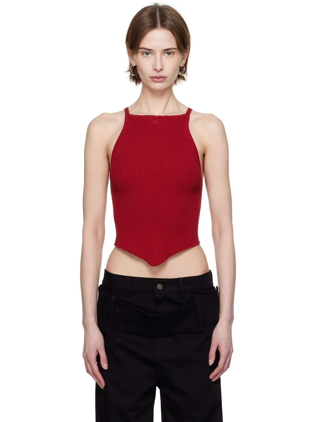 Red Pointy Rib Knit Tank Top