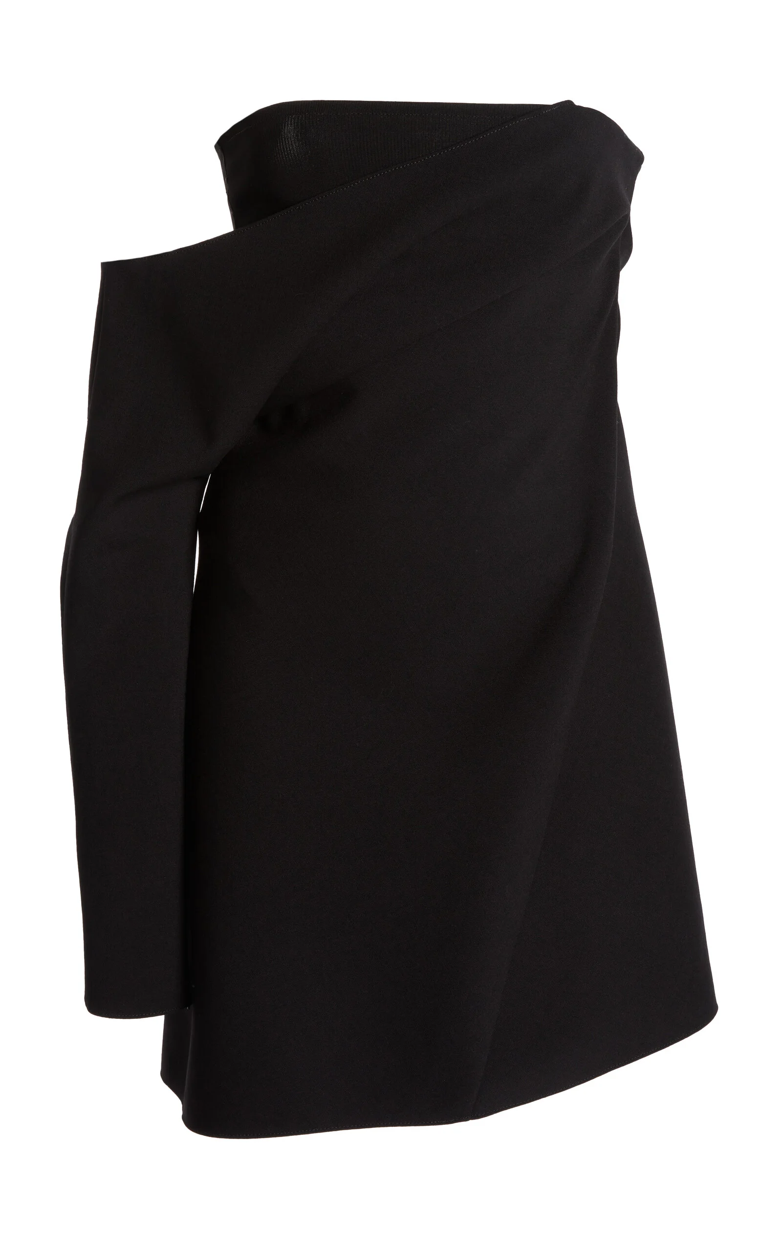 PRODUCT DETAILS - Slim fit, strapless neckline with single-sleeves, column silhouette mini - Zip Fastening Through Back - Lined - Composition: 51% Polyester 41% Wool 4% Elastane 4% Polyamide/Nylon 86% Viscose 10% Polyamide/Nylon 4% Elastane - Color: black - Dry Clean Only - Fall-Winter '25