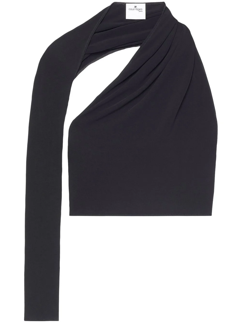 Slash asymmetric cropped top Highlights - Black - Stretch-design - Single long sleeve - Open back - Asymmetric neck - Cropped - Straight hem - Rear hook fastening Imported Composition Viscose 95%, Elastane 5% Washing instructions Read Manufacturer Guidelines