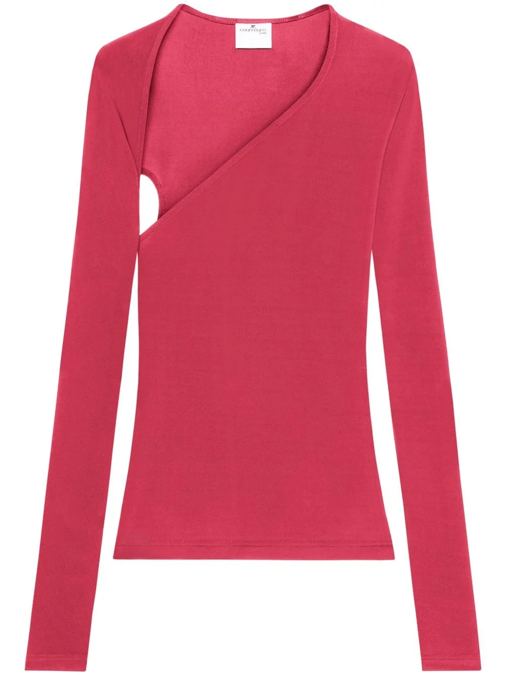 Slash asymmetric top Highlights - Red - Stretch-design - Jersey texture - Crepe texture - Asymmetric neck - Long sleeves - Straight hem Imported Composition Viscose 95%, Elastane 5%