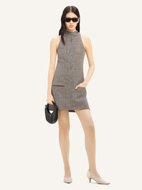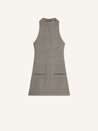 High-collar Prince of Wales trapeze mini dress with AC logo. Sleeveless, with two front welt pockets. The model is 1.78m tall and wears a size 36. DETAILS Composition: 51% polyester, 49% wool Country of Manufacture: RS SKU: 324CRO456PL0165B107 Color: Sand / Mud Brown