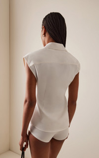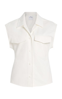 After 12 years alongside Nicolas Ghesquiere and a brief stint at Dior with Raf Simons, Courreges artistic director Nicolas Di Felice has brought the renowned French fashion house back to life. Sleeveless utility shirt with two patched pockets at chest. Embroidered logo at the corner of the front pocket. PRODUCT DETAILS - Resort '25 - Button fastening - Composition: 65% polyester, 35% cotton - Designer color: Heritage White - Dry clean - Made in Portugal SIZE & FIT - Our model is wearing a size FR 34 - Model is 5'10" with a 30" bust, 24" waist, and 34" hip - Designed for a regular fit