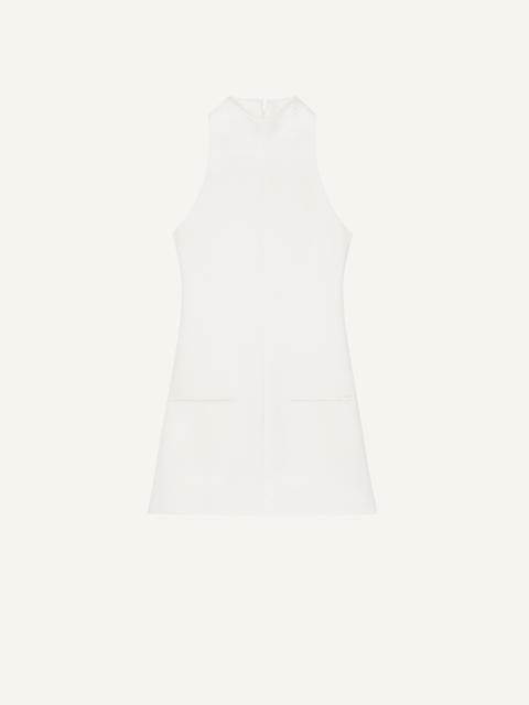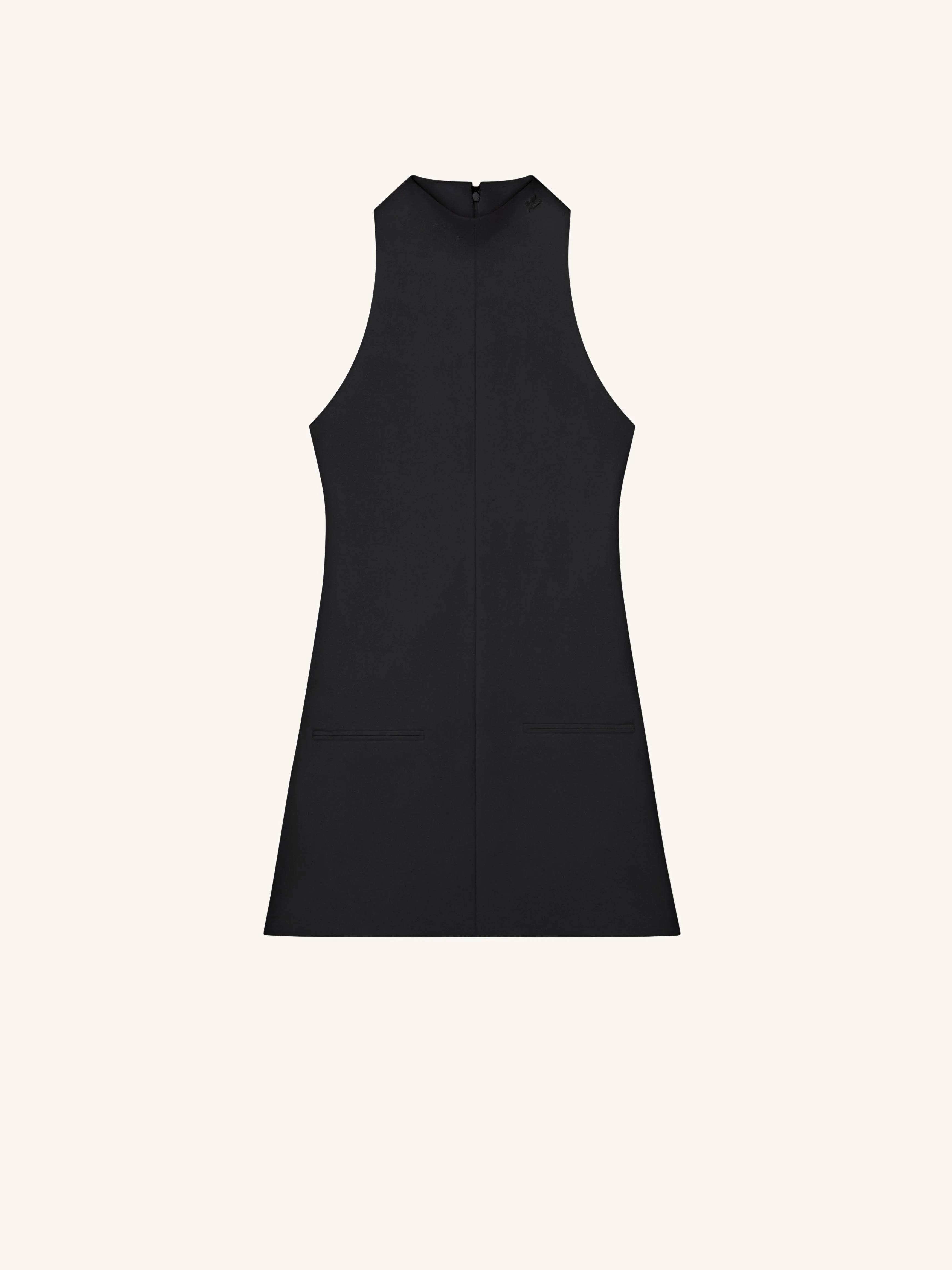 High-collar twill trapeze mini dress with AC logo. Sleeveless with two front welt pockets. The model is 1.78m tall and wears a size 36. DETAILS Composition: 83% polyester, 17% acetate Country of Manufacture: RS SKU: VESCRO456PL00079999 Color: Black