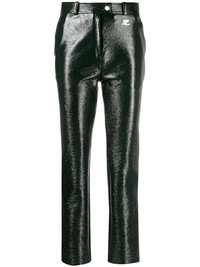 slim-cut vinyl trousers Highlights - Dark green - Cupro-cotton-blend - Slim cut - Vinyl-effect - Off-centre front fastening - Logo patch to the front - Belt loops - Slip pockets to the sides Imported Composition Outer: Cotton 88%, Polyurethane 10%, Elastane 2% Lining: Cupro 100% SIZE & FIT Model measurements Height 5 ft 10 in(1.78 m) Bust/Chest 32.28 in(82 cm) Hips 35.82 in(91 cm) Waist 24.8 in(63 cm) Measurement INSIDE LEG 30.31 in(77 cm) Hem Width 7.48 in(19 cm) FRONT RISE 12.2 in(31 cm) WAIST 30.7 in(78 cm) HIPS 37.79 in(96 cm) FittingInformation This piece fits true to size. We recommend you get your regular size Cut for a slim fit Made with a mid-weight fabric Washing instructions Dry Clean Only