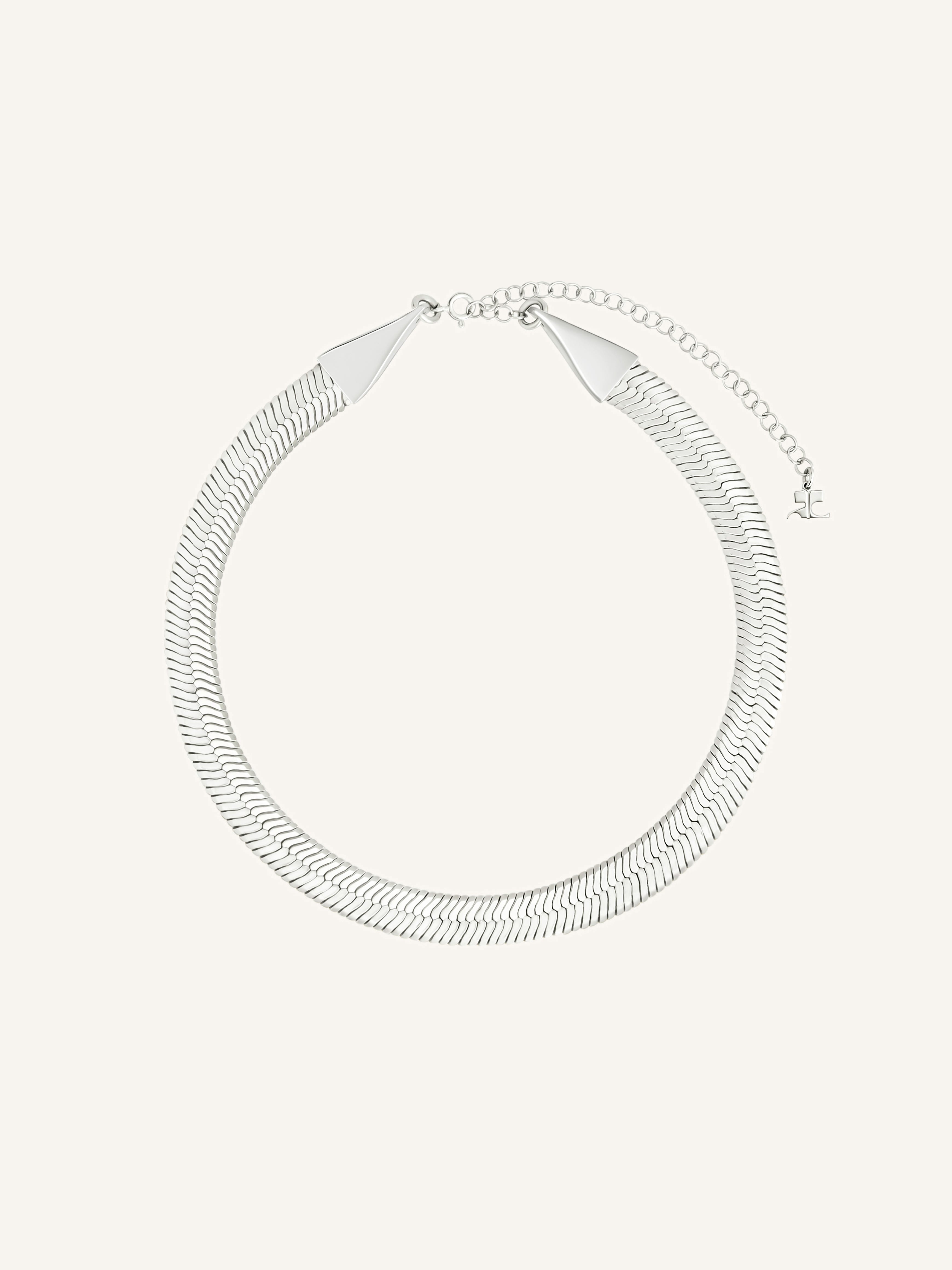 Silver snake-mesh choker necklace with AC logo at end of chain. Length: 47 cm Width: 1 cm Thickness: 0.2 cm DETAILS Composition: 100% brass Country of Manufacture: IT SKU: 424ACO032LA00019000 Color: Silver