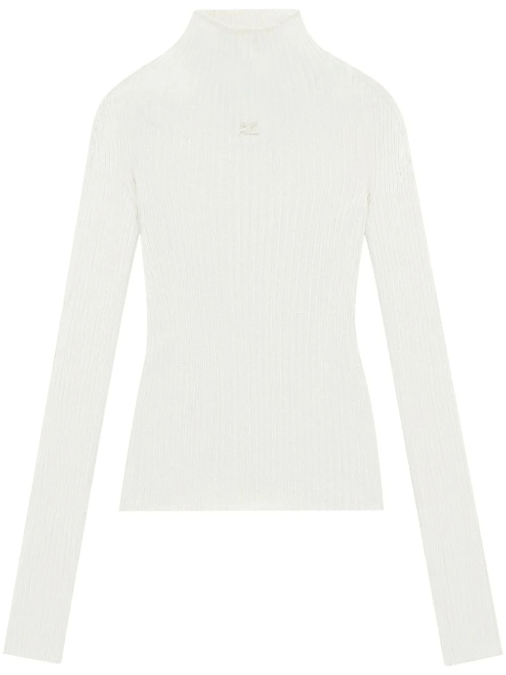 Solar jumper Highlights - White - Organic cotton-wool blend - Ribbed knit - High neck - Long raglan sleeves - Applique logo - Straight hem Made in Italy Composition Organic Cotton 80%, Merino 20% SIZE & FIT FittingInformation Designed for a close fit throughout Made with a lightweight knit, this piece offers some stretch Washing instructions Read Manufacturer Guidelines