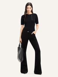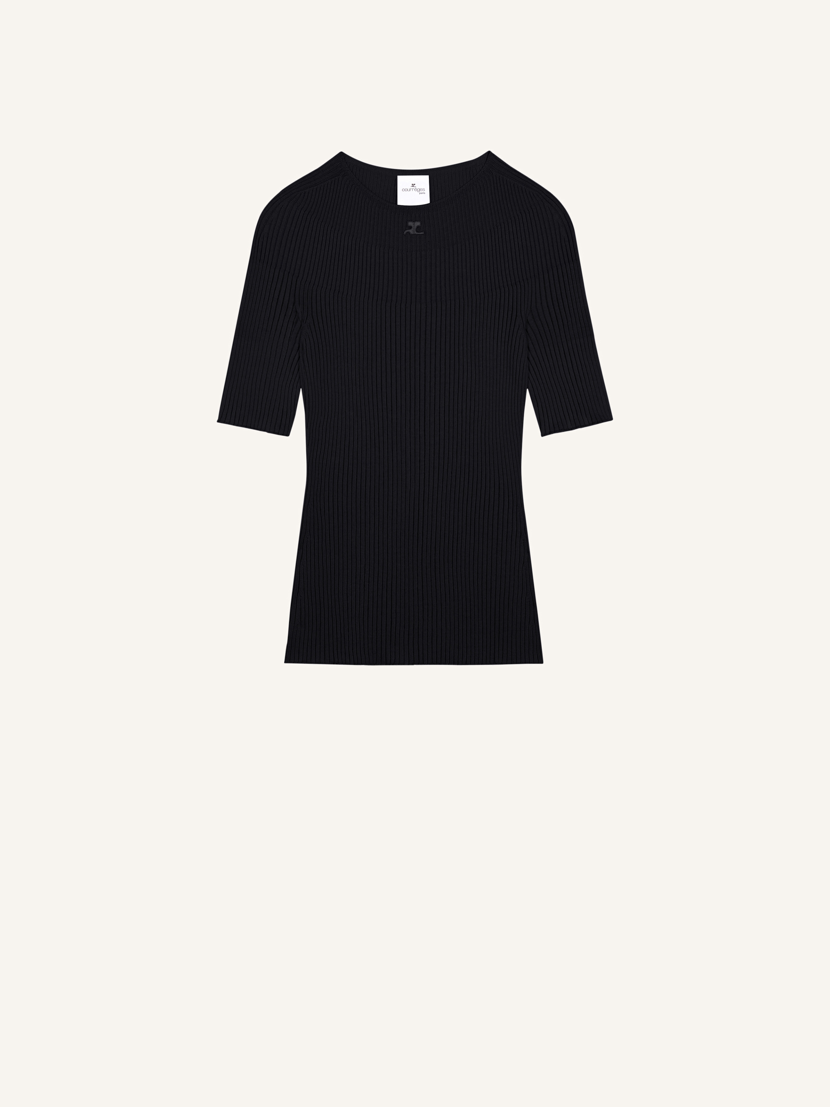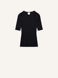 This short sleeved sweater has a circular neckline, a solar knitted detail and AC logo. DETAILS Composition : 80% Coton, 20% Laine Mérinos Pays de fabrication : Italie Couleur : Noir Code Article : 124MPU130FI0049