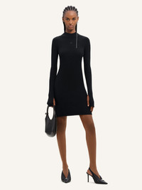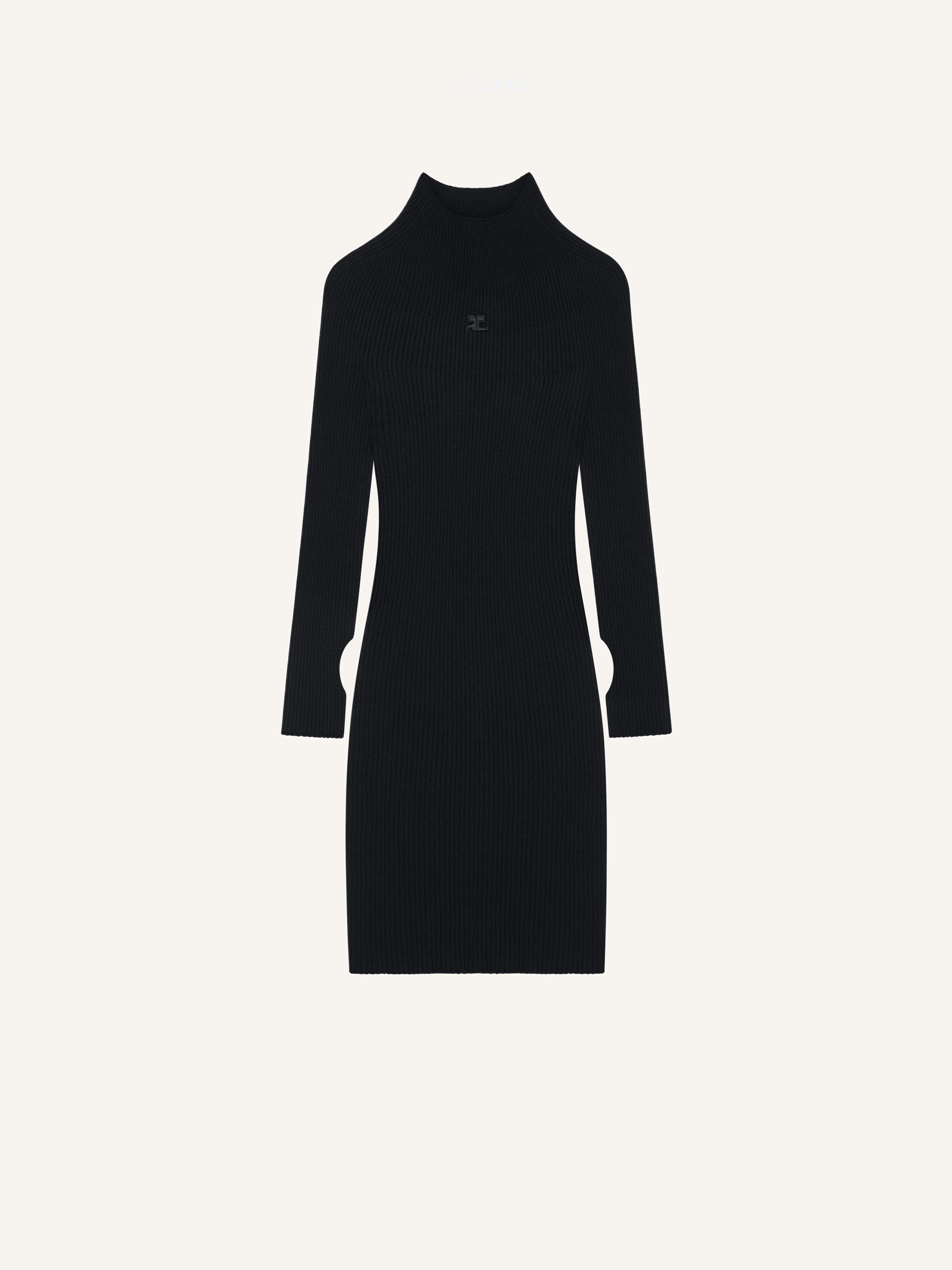 Solar knitted high neck mini dress. Fitted cut and long mittens-style sleeves. AC logo centered on the chest. The model is 1.76m tall and wears a size S. DETAILS Composition: 80% cotton, 20% merino wool Country of Manufacture: IT SKU: 324MRO466FI00499999 Color: Black