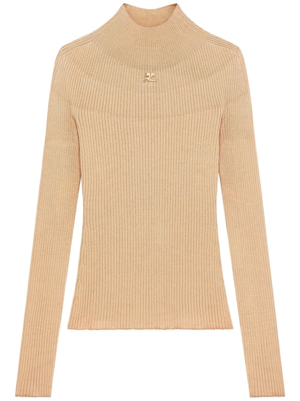 Solar sweater Highlights - Beige - Cotton-merino wool blend - Knitted construction - Logo patch to the front - Mock neck - Seamless - Long sleeves - Straight hem Made in Italy Composition Cotton 80%, Merino 20% SIZE & FIT FittingInformation Designed for a close fit throughout Made with a lightweight knit, this piece offers some stretch