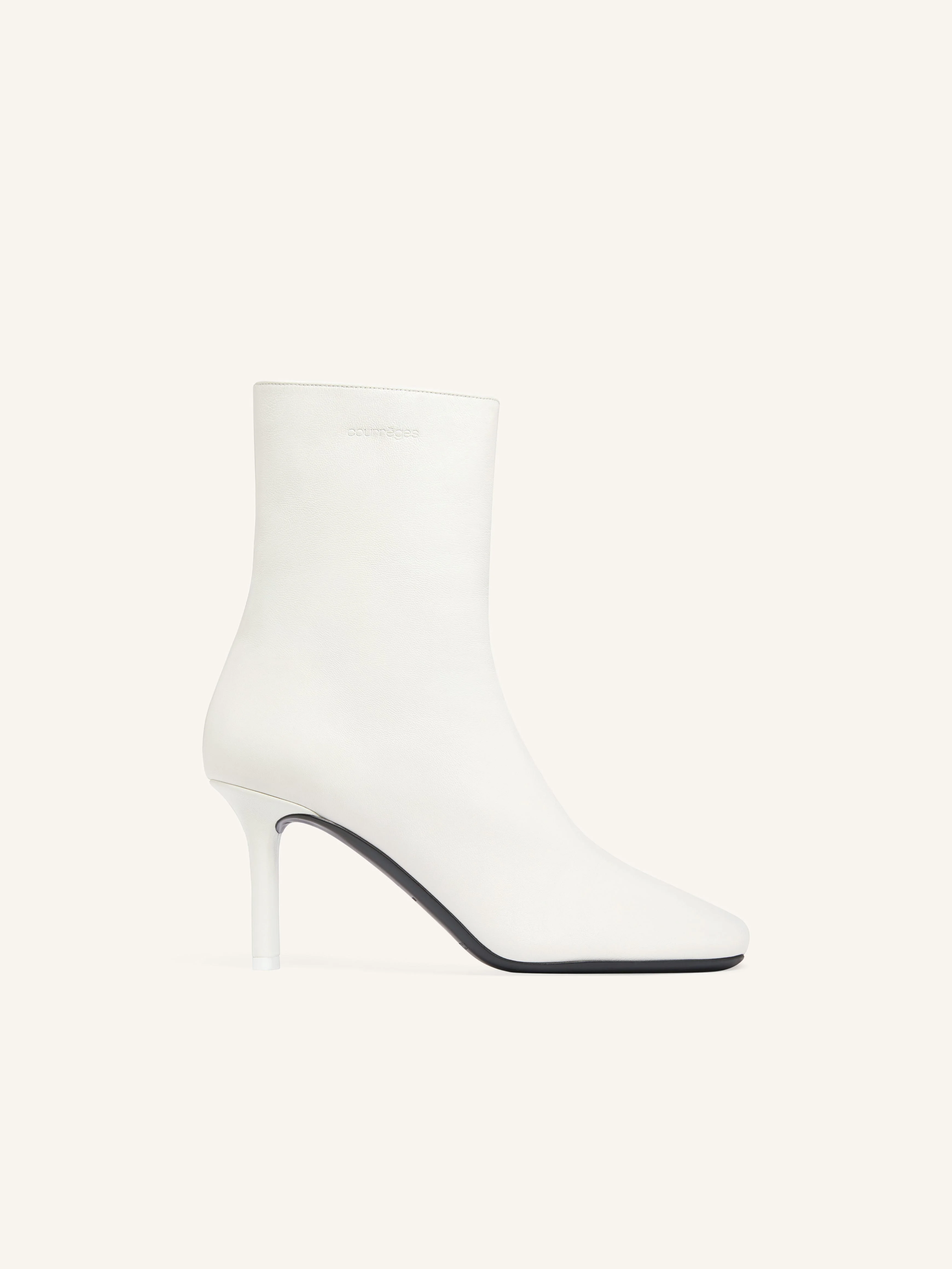 Square-toe lambskin ankle boots. Zip closure, leather-covered heel and metallic AC logo on the side. DETAILS Composition: 100% lamb leather Country of Manufacture: IT SKU: 425SAB048AG00440001 Color: Heritage White