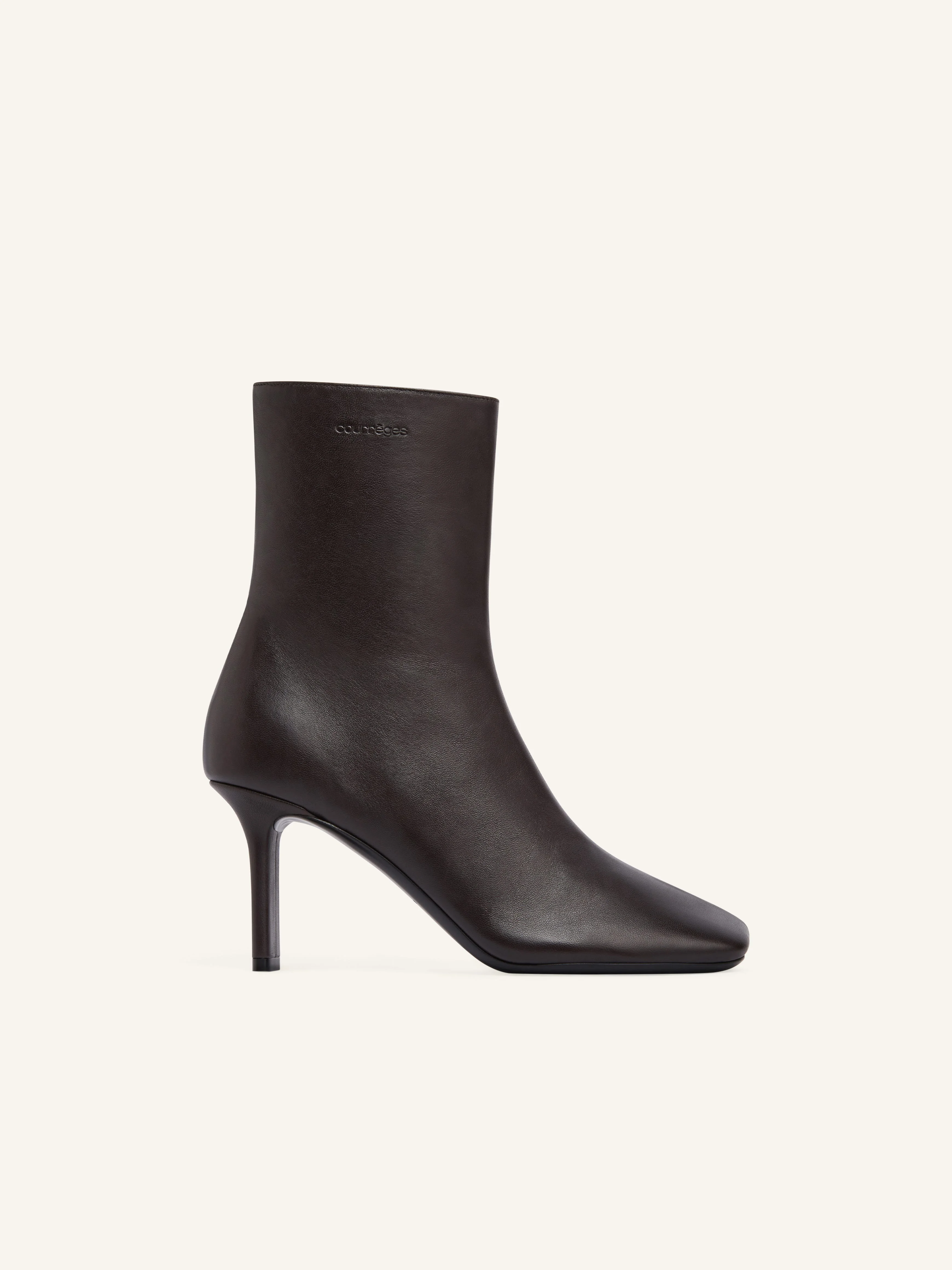 Square-toe lambskin ankle boots. Zip closure, leather-covered heel and metallic AC logo on the side. DETAILS Composition: 100% lamb leather Country of Manufacture: IT SKU: 425SAB048AG00441152 Color: Tapioca