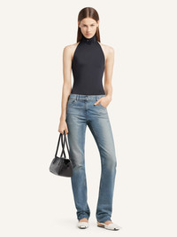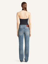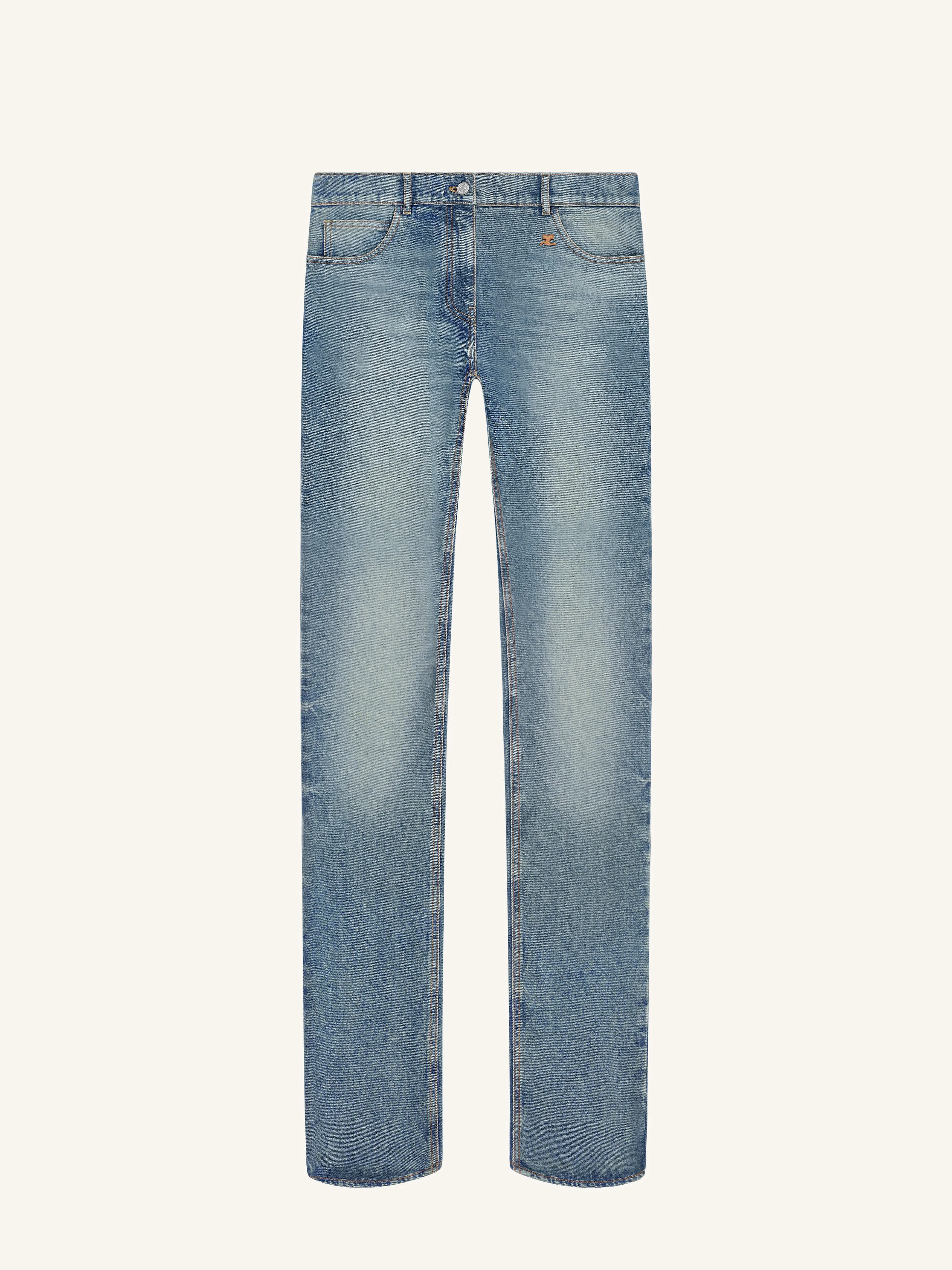Five-pocket straight denim pants with embroidered AC logo on the front. Each piece is different; bleaching is done by hand and does not allow for an even fading effect. The model is 1.79m and wears a size 26. DETAILS Composition: 100% cotton Country of Manufacture: FR SKU: 126DPA673DE00587055 Color: Denim blue