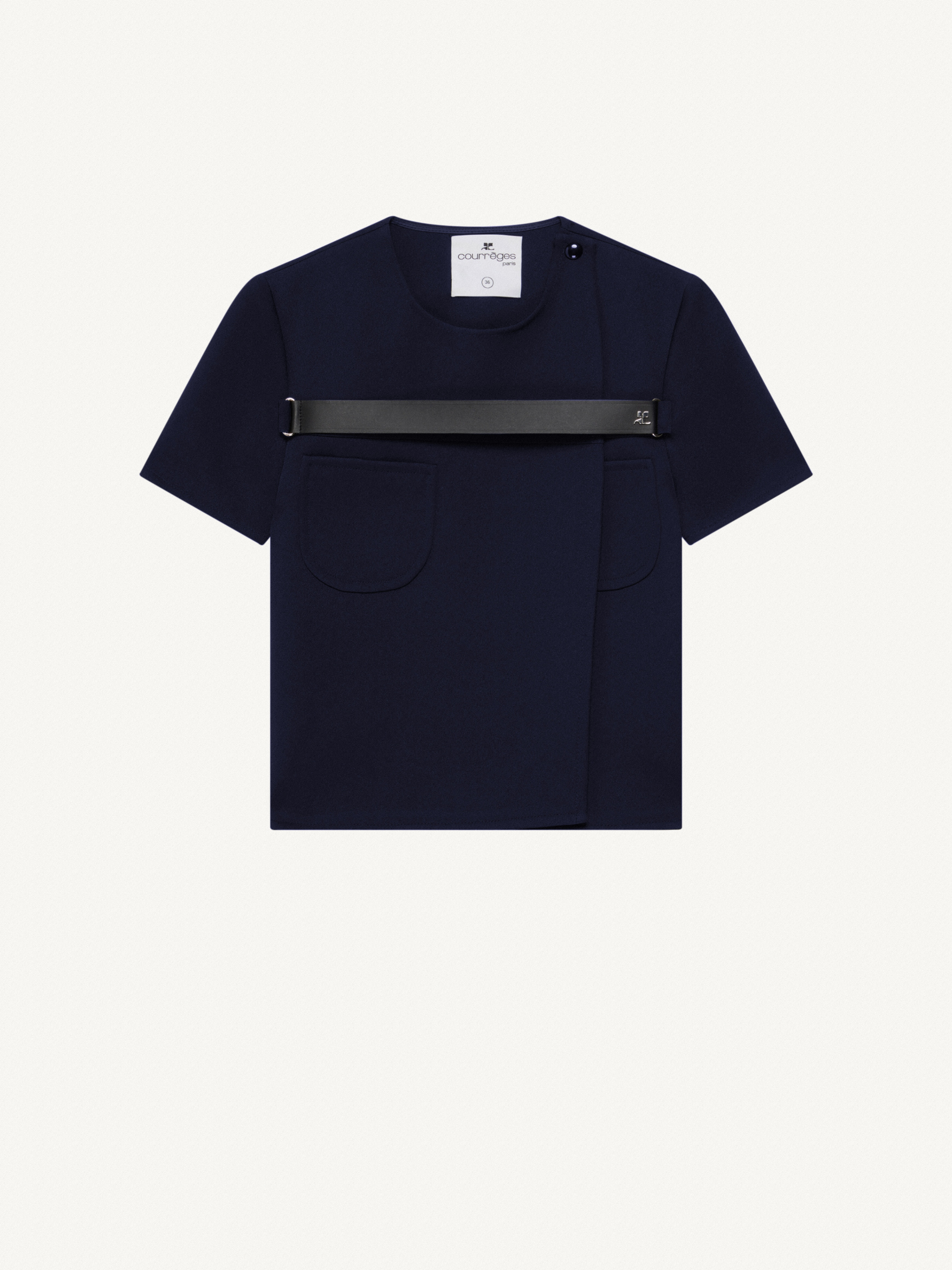 Short sleeves twill wrap top with an adjustable strap and front pockets. DETAILS Details: 83% polyester 17% acetate lining: 100% cupro Country of manufacture: Slovakia Color: Encre Item code: 223CTO148PL00077077