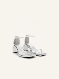 Stream sandals in nappa leather-look synthetic material adorned with a strap at the front and a buckle strap at the ankle. Heel height: 7.5 cm Rod height: 7.5 cm Front width: 7 cm Heel width: 6.3 cm Strap width: 0.9 cm DETAILS Composition: 80% polyurethane, 20% polyester Country of Manufacture: IT SKU: 224SSD013PU00179002 Color: Mirror