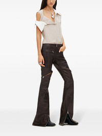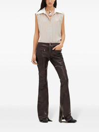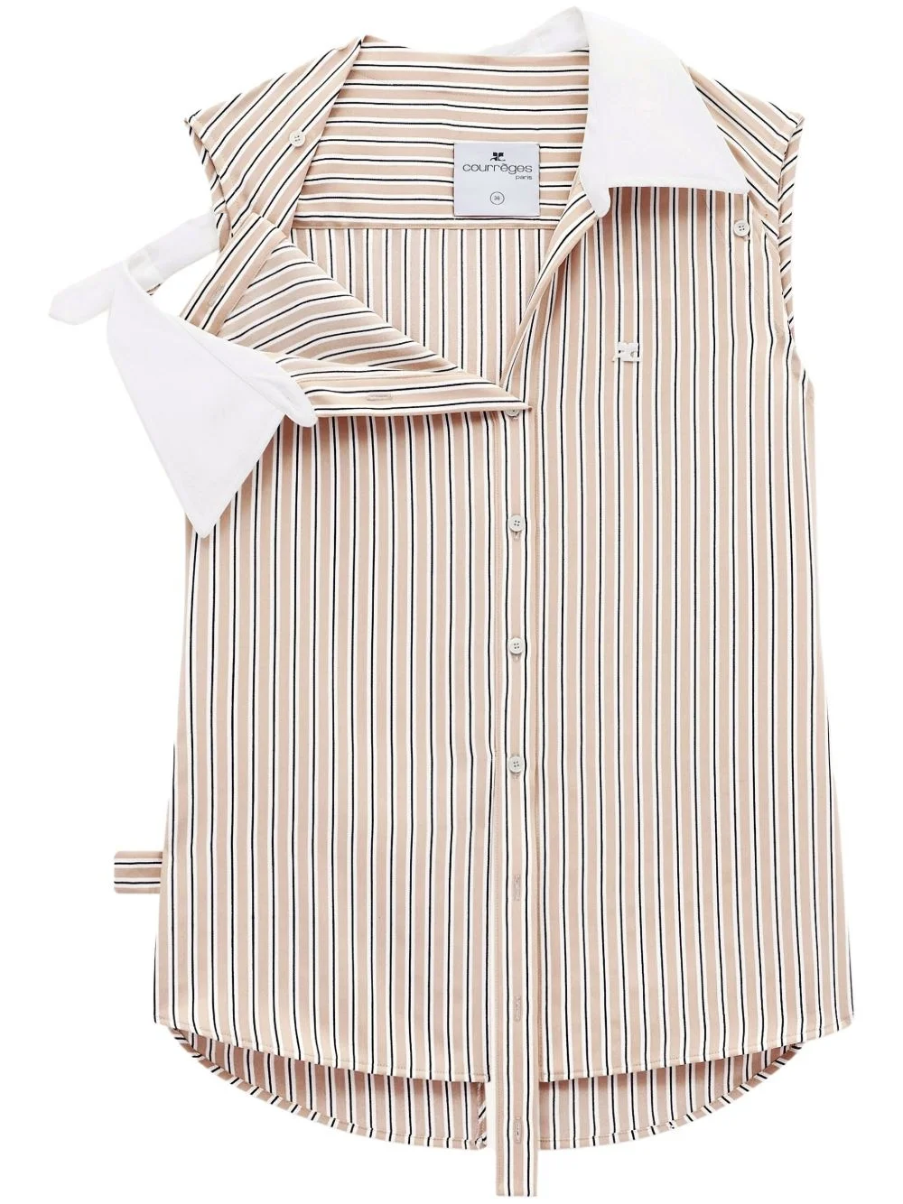 striped shirt Highlights - Brown/white - Poplin texture - Vertical stripe print - Embroidered logo at the chest - Asymmetric collar - V-neck - Sleeveless - Curved hem Made in Italy Composition Polyester 100%
